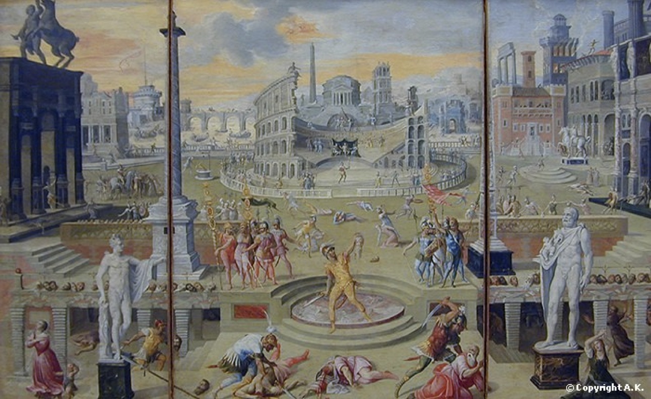 I wanted to go up as high as we could because nobody ever does anything except look at the overrated Mona Lisa, the interesting, yet not that much Winged Victory, and the simply dull Venus de Milo. Other than that, visitors pretend they know what they are doing and run around the halls thinking they look highly educated considering the art, whilst trying to look as if they are not bored out of their minds. I on the other hand, don’t bother trying to look intelligent, I just wander around until I find something that humors me. For example, my new favorite painting is “Les Massacres du Triumvirat” by Antoine Caron.