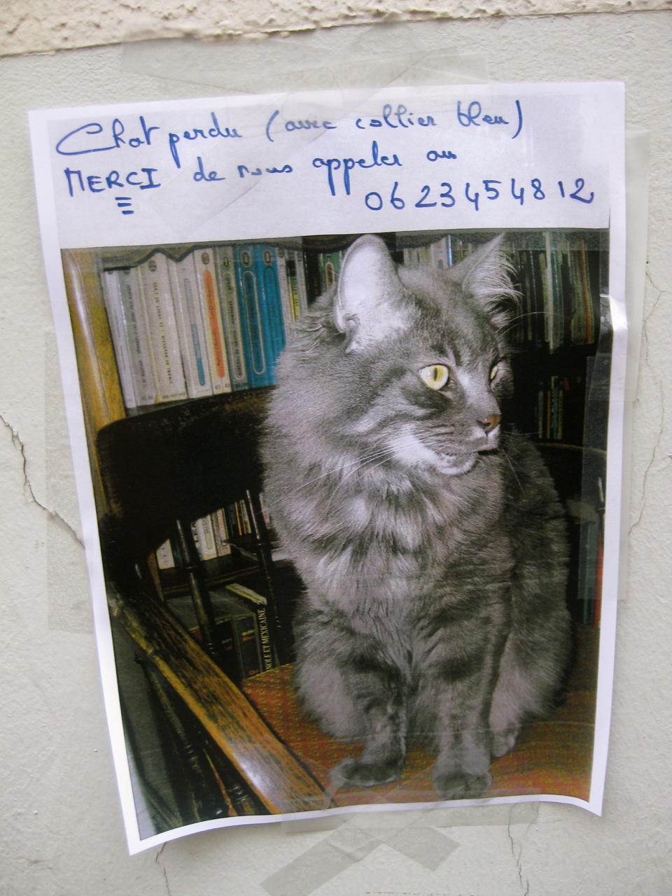 Poor cat…if Tiger or Clea or Shadow had ever run off, I wouldn’t have any more reason for living. Shadow used to run away and cause me way too much stress. Tiger has pranced out the door once or twice, which is always scary, but he knows he is too stupid to survive outside, so he always runs back to the front door.