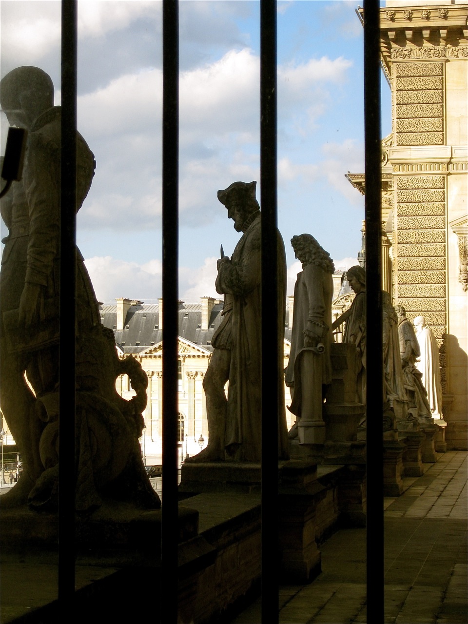 I stopped at the post office on my way into the Louvre and grabbed some envelopes and then made my way into the museum, flashing my member card like a reporter at a murder scene. Feeling rather special, I walked into my favorite room. I don’t know what it is called, but it is the most peaceful spot in the whole museum with big statues that have nothing to do with each other, all mixed together under a giant ceiling of glass. It must have been an outer area of the palace when the king was still there.