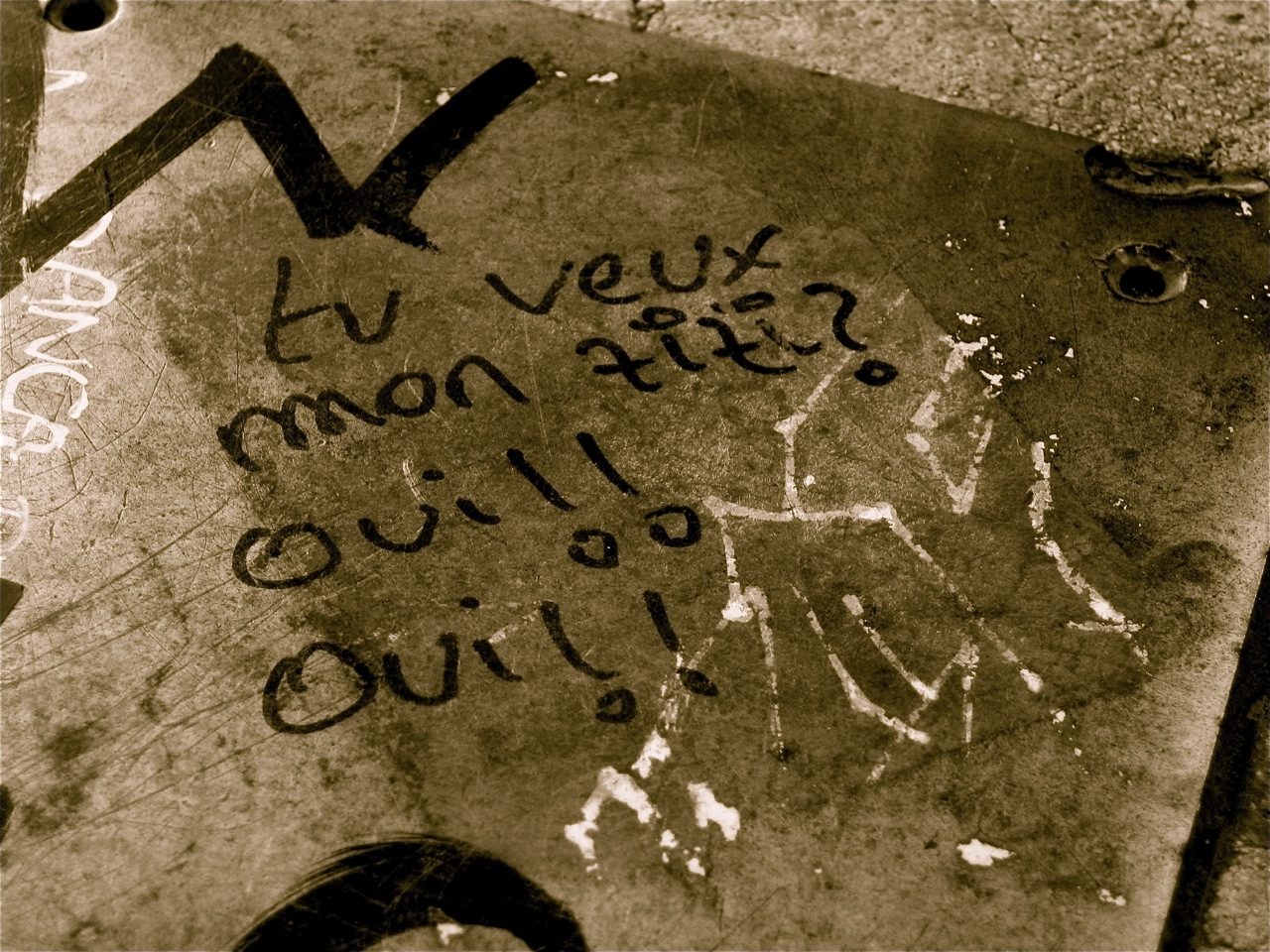Once Jessica got over her spontaneous outburst of sobbing joy, I told them all to get ready to go to the Monoprix to get picnic food. They got dressed up again, Granny this time with four layers of clothing, a coat, earmuffs, and gloves. The rest of us just wore a sweater because it was nice out. Soon we were at the Monoprix and Jessica was thoroughly impressed with the selection of purses and makeup and shoes. We looked at pens and bought soap and that was fun. Then, we all went upstairs to get the food.