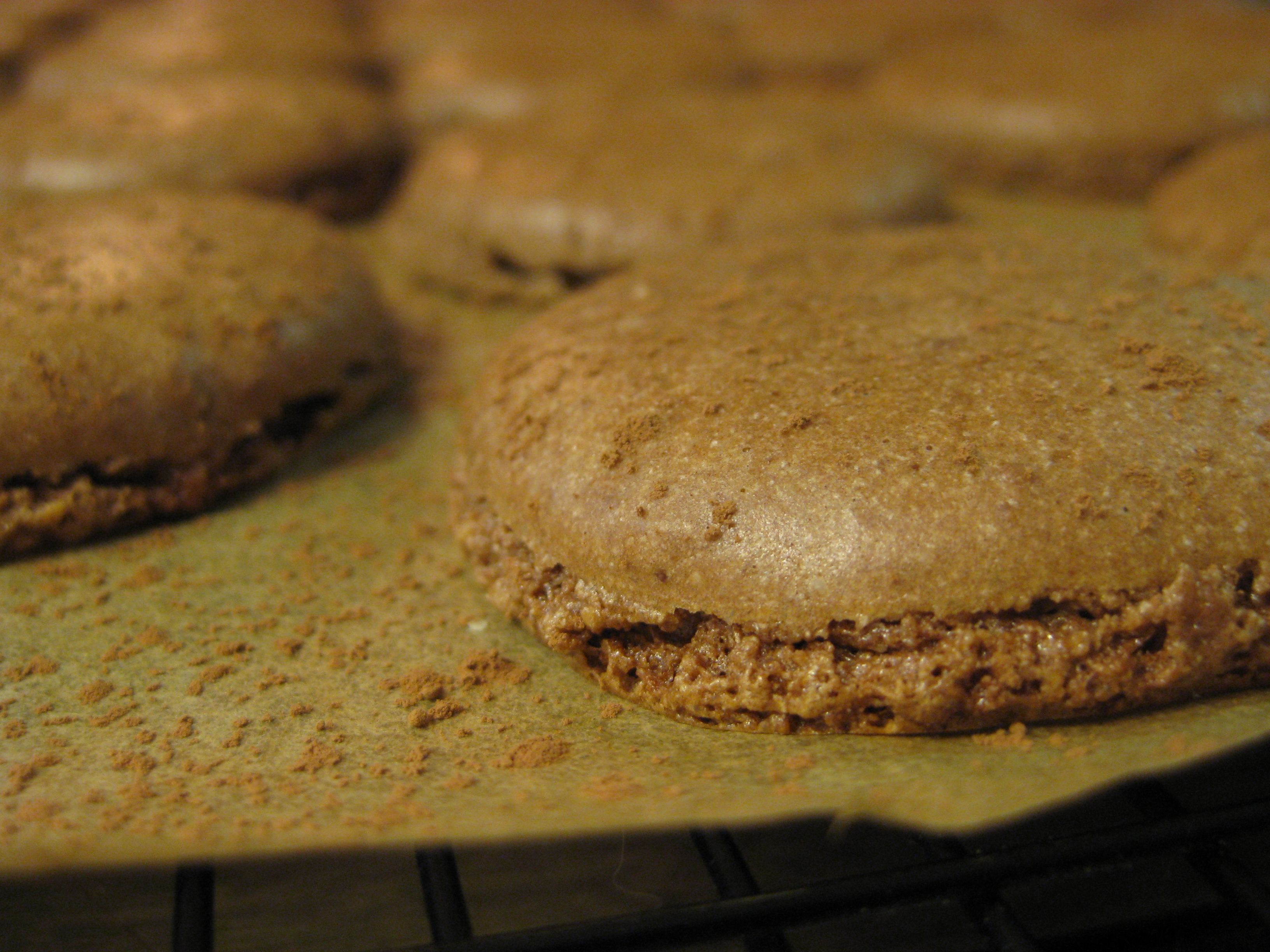 As they cooled, I shook some cocoa powder over them and removed them from their parchment paper as the others baked. Amazingly, ever single macaron turned out. Only one broke as I removed it from the paper and only two or three burned. I was so happy and proud of myself.