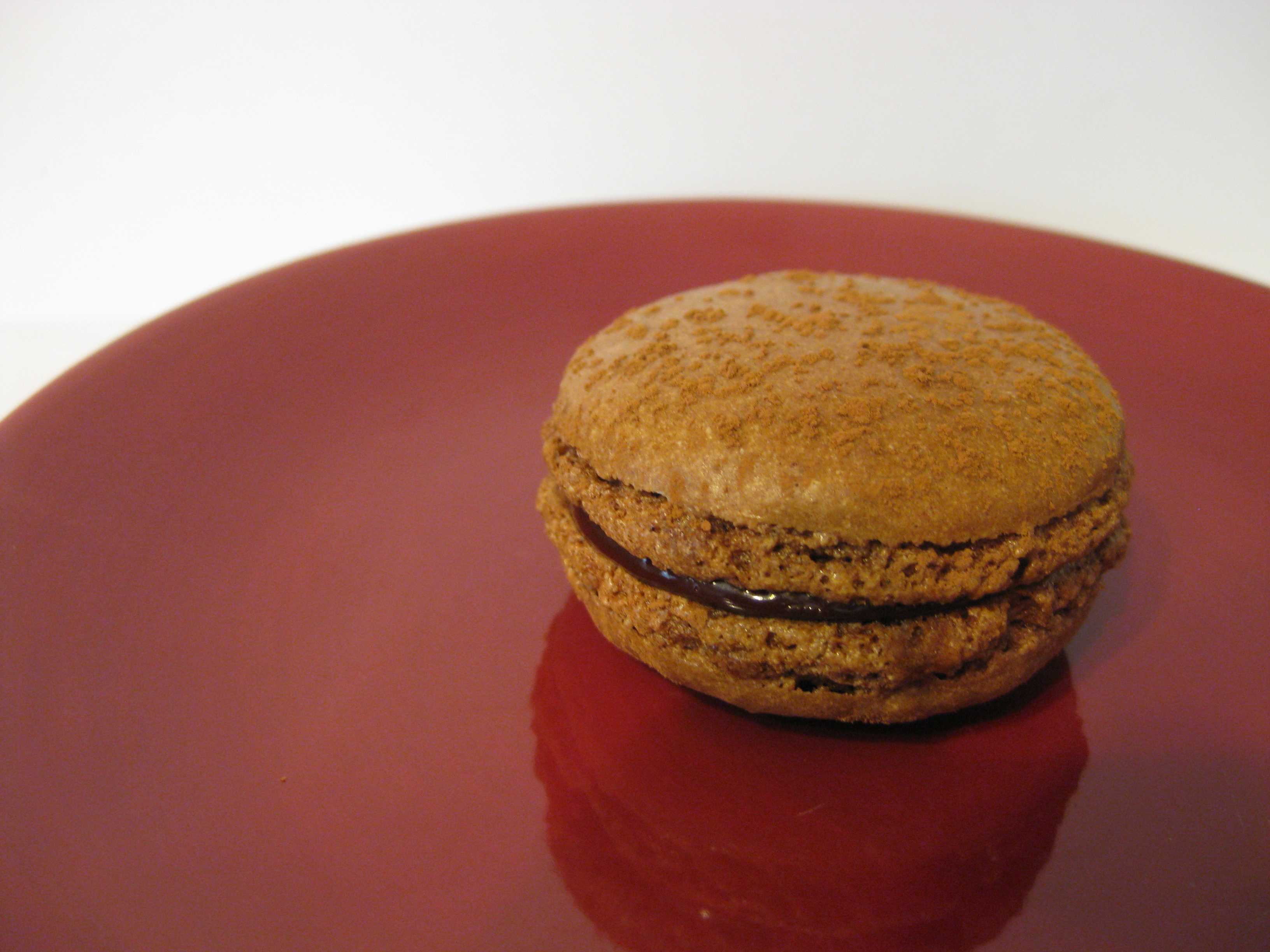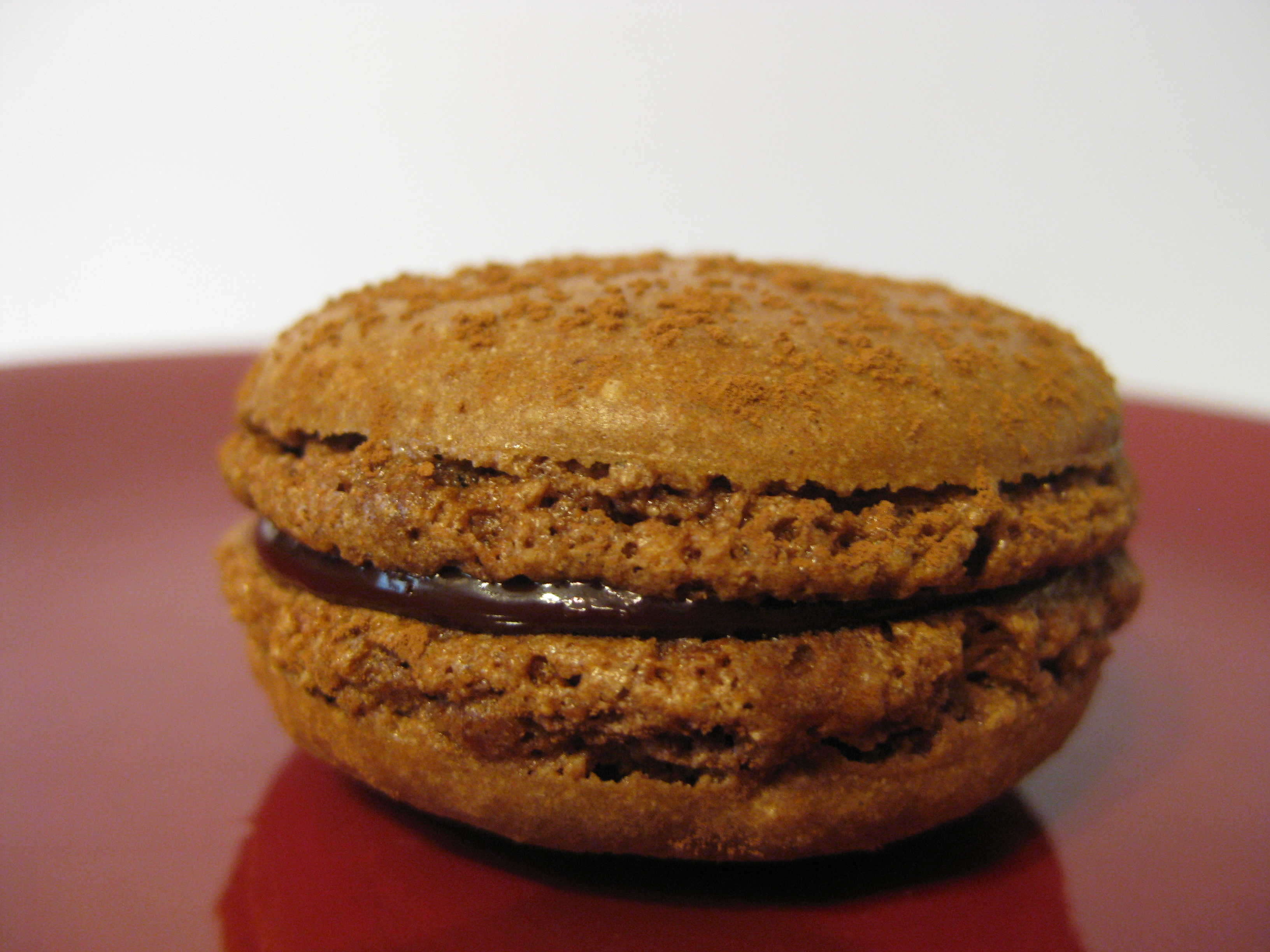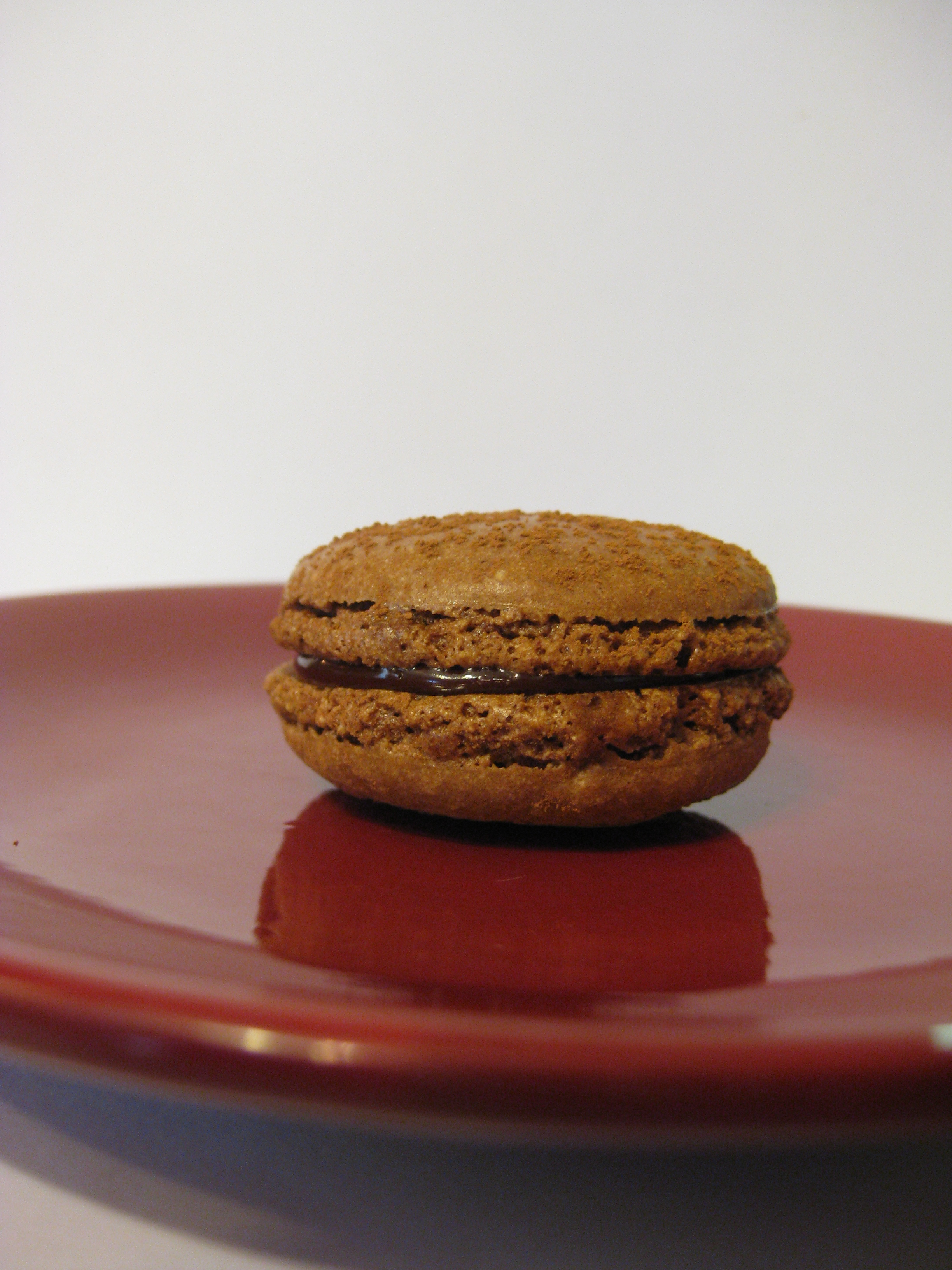 As they cooled down, I made the simple ganache and put it in a pastry bag. It was too runny to do any good, so I kind of poured it out of the piping tip onto the macaroon. Sandwiching on the top, I felt immensely satisfied.