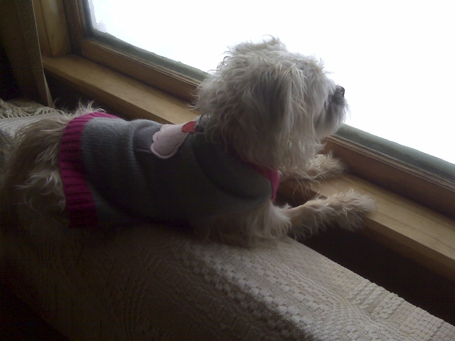 Lastly, here’s a picture of my dog, Shadow. He has nothing to do with antiques, but I like this picture of him. He hasn’t been feeling his best lately, but I think he’s feeling better now. He loves his cupcake sweater.