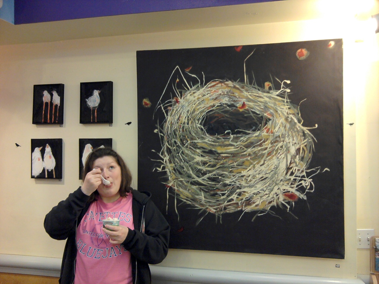 Jessica wanted to get some ice cream from the Häagen-Dazs shop so she got some of that. There were paintings by a local artist on the walls. I’m not usually a fan of modern art, but this was absolutely beautiful, and simple, and I’m going to do it myself one day. It cannot be hard. I mean, it wasn’t anything a child couldn’t do, and what is the difference between a painting by a child and a painting meant to look like a child’s painting?