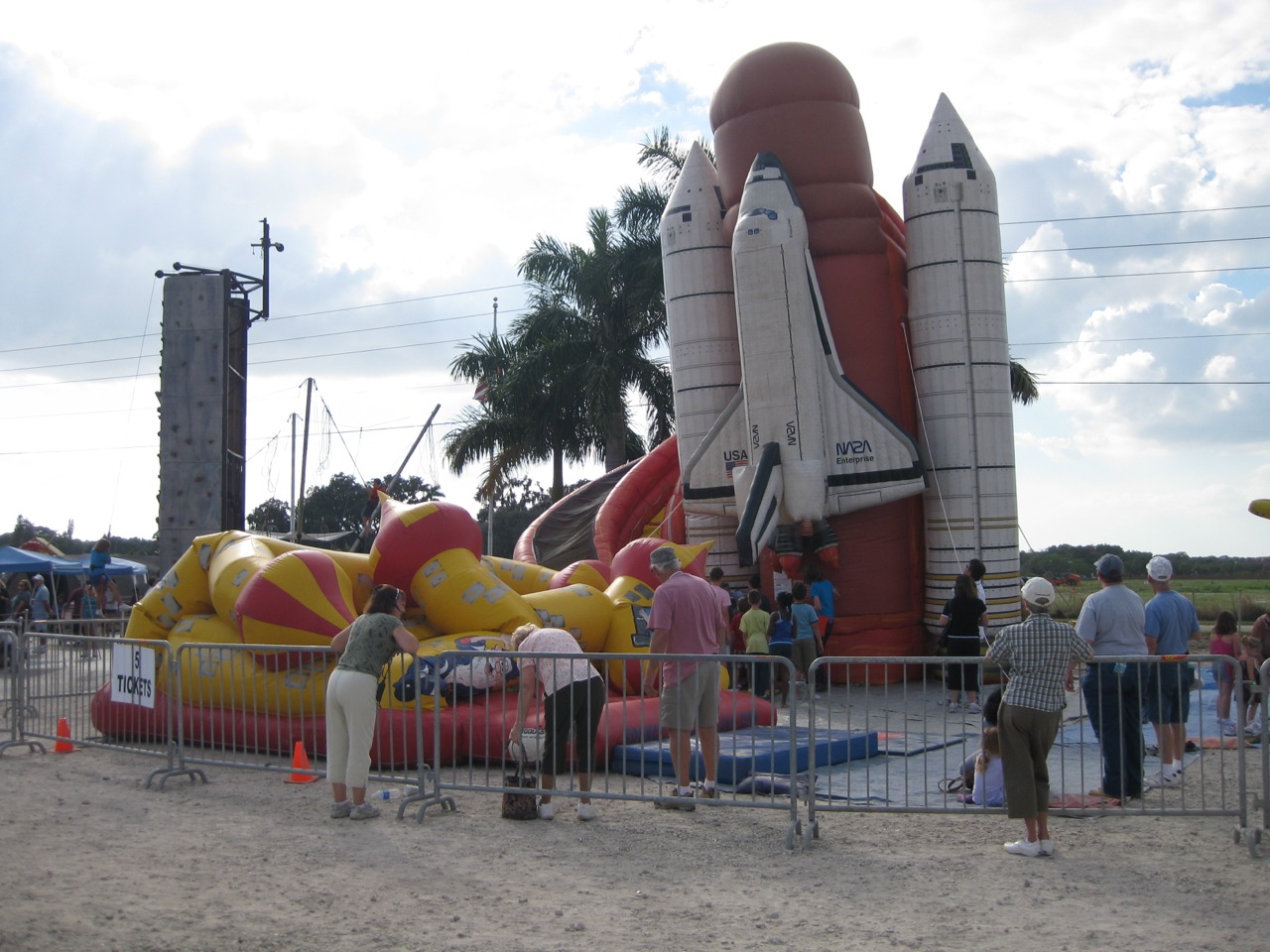 There were stalls selling crap, other stalls selling junk, and a few others selling shit. It was the most ridiculous assortment of nonsense that I have ever seen. I was delighted, of course, watching the hill folk run about buying shark’s teeth and cloth covers for their generic-brand Kleenex boxes. Then, there was a small amusement park. You could go on something that claimed it was certified for astronaut training at NASA. I doubt this. It was hand powered and looked incredibly dangerous. There was a miniature pony ride that had full grown people riding on it. It seemed cruel. There was also an inflatable jumping thing, I don’t know what they’re called, which popped with children inside. You could hear their squeals as the plastic deflated and fell on top of them. I was amused.