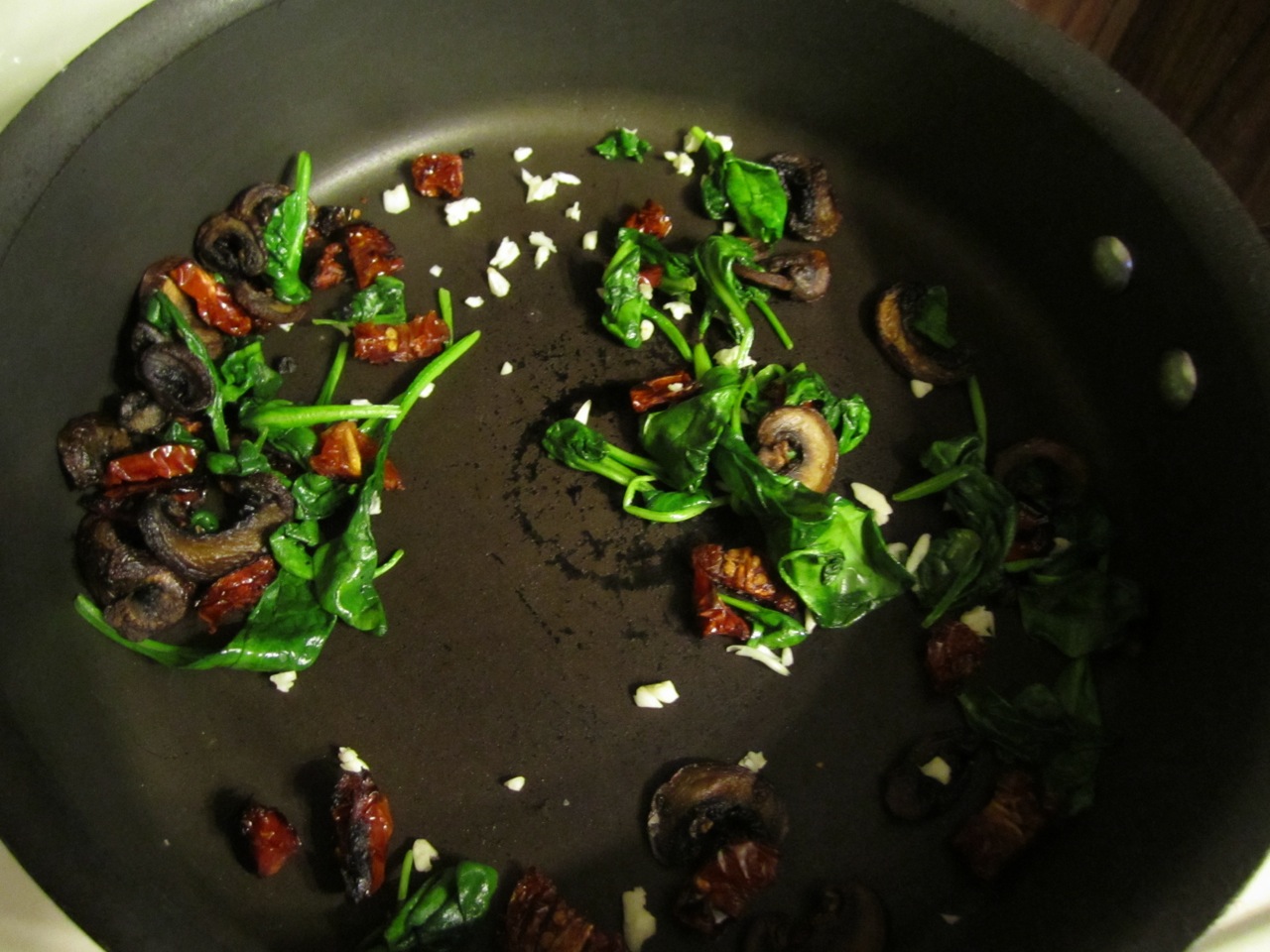 Toss in the sun-dried tomatoes and heat through.