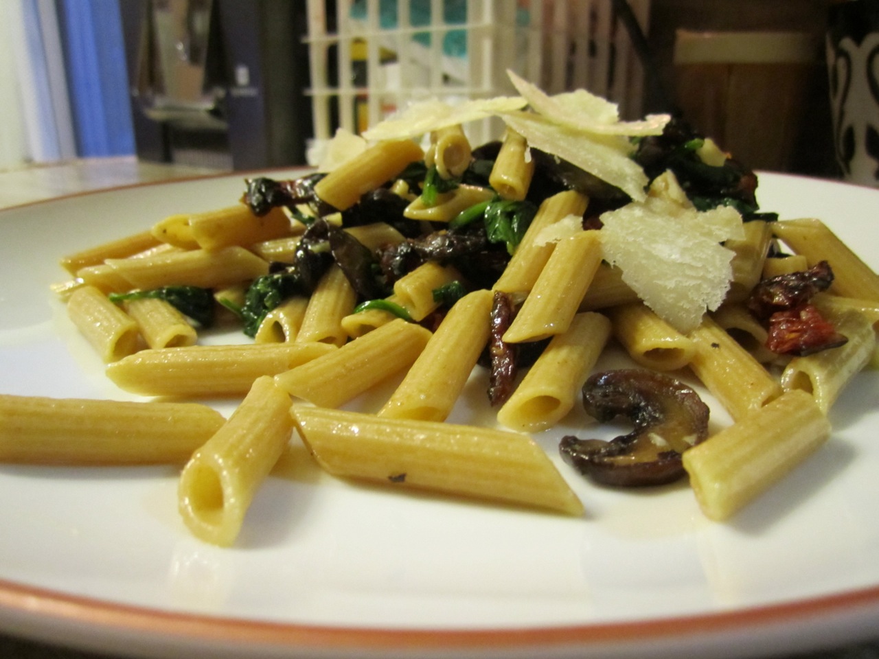 So, Penne à la Dominic trumps Penne Alla Sophia. It is lighter, healthier, more delicious, certainly cheaper, and perfectly proportioned. I also like this dish because it is really rather meaty with the mushrooms and sun-dried tomatoes. I have been a vegetarian for about six months now, so it is always nice to have a dish that seems meaty and hearty even if there is no meat.