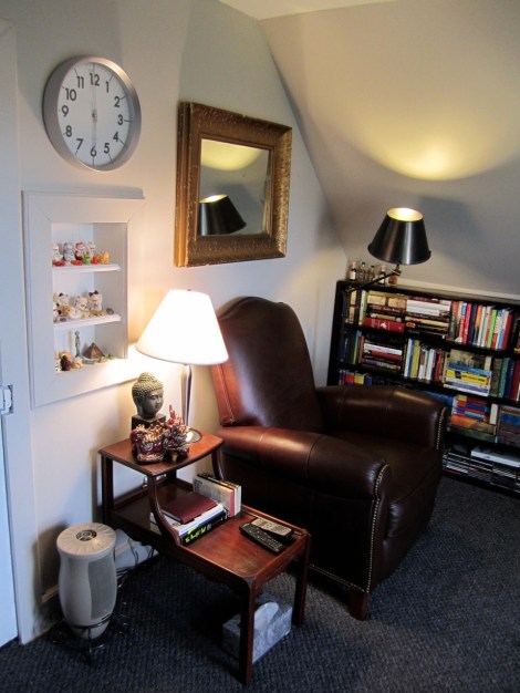The room as it was, was not fun for me to be in. It drained me of creativity and the feel of the place wasn’t soothing. There was no space whatsoever, just enough to walk from spot to spot. It was truly a claustrophobic area and I simply had had enough with it. I wanted a spa-like oasis where I could relax and escape the chaos in the rest of my home. I wanted a place where I could read, ponder, watch British sitcoms, and work on my novels.
