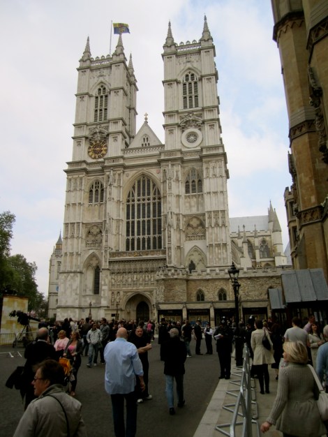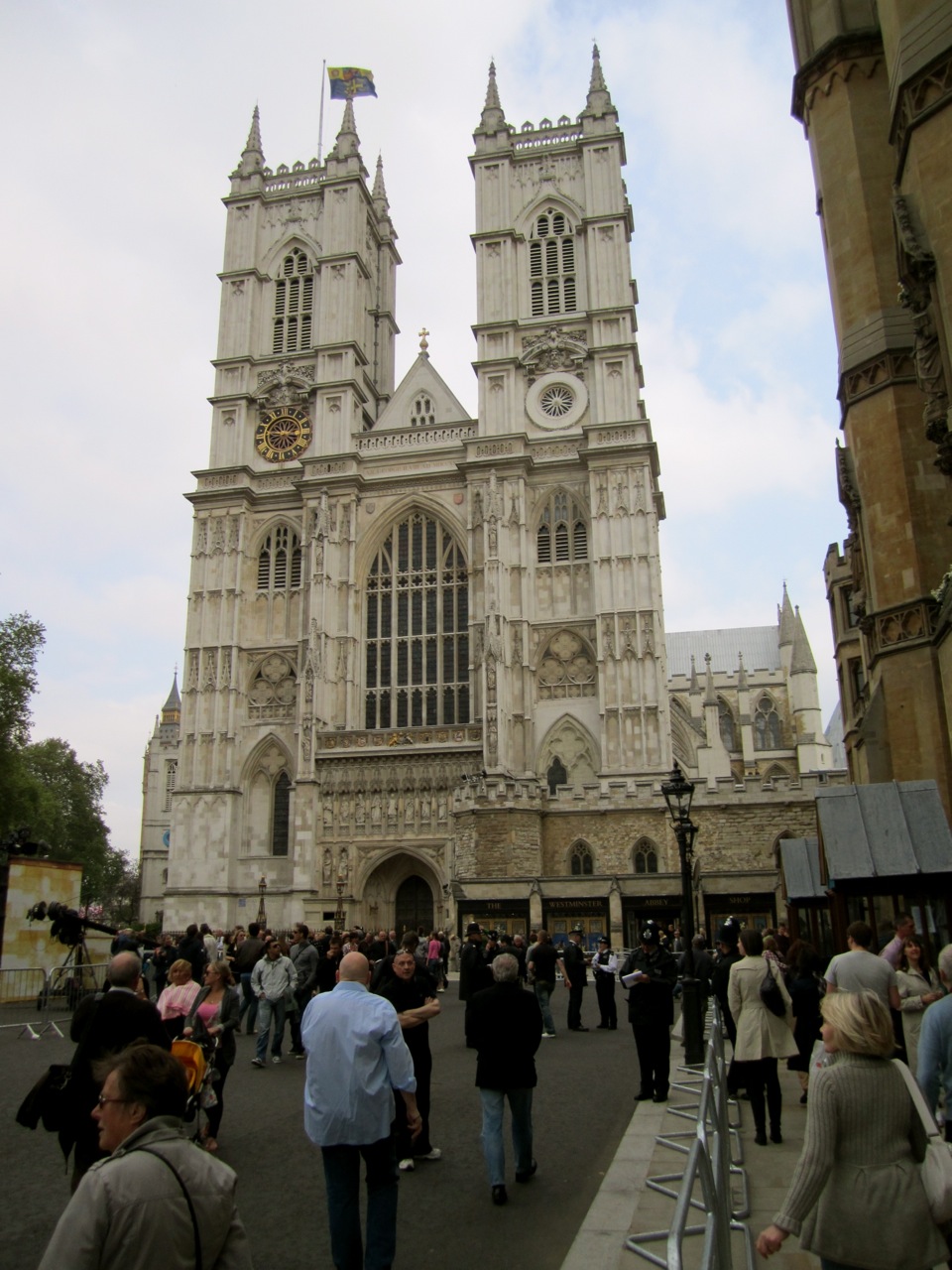 Here is the entrance to Westminster Abbey where all the royals, celebrities, and boring commoners will pass through. Everybody was eager to get a view and take a few pictures before madness breaks out tomorrow.