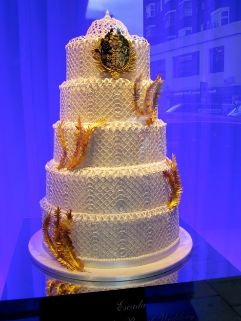 There was a display of wedding cakes in preparation for the Royal Wedding. They all sucked–except for this one. It was so intricate. The bakers made tiles out of piped meringue and then glued them onto the sides of cake with frosting. This is lazy genius. Piping frosting is hard. It is squishy and it moves. Once you pipe out a meringue and let it dry, it is hard and you don’t have to worry about it, unless it breaks. I applaud them.