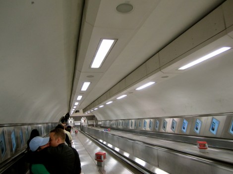 Here is a view of the insanely long escalator only halfway down. I am positive these people put on a disgusting display of public affection just to ruin my shot and make it all about them.