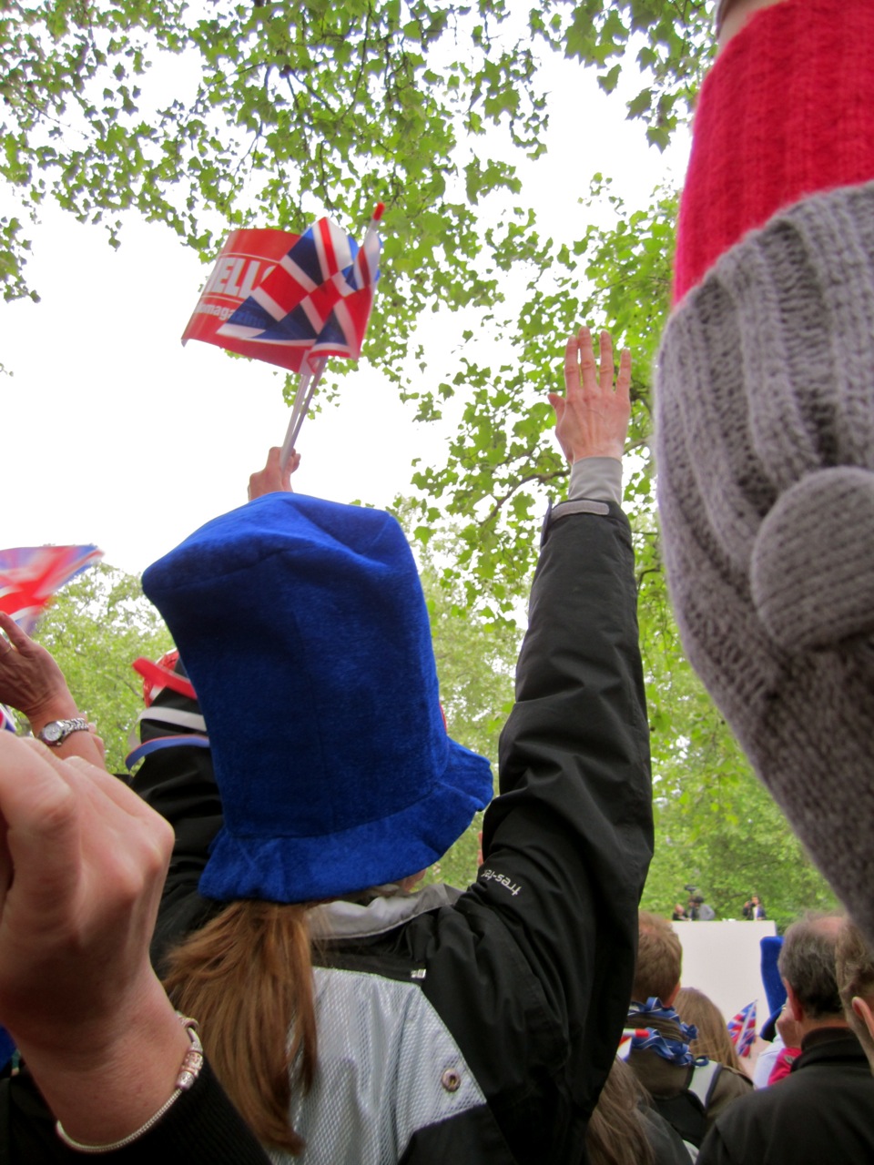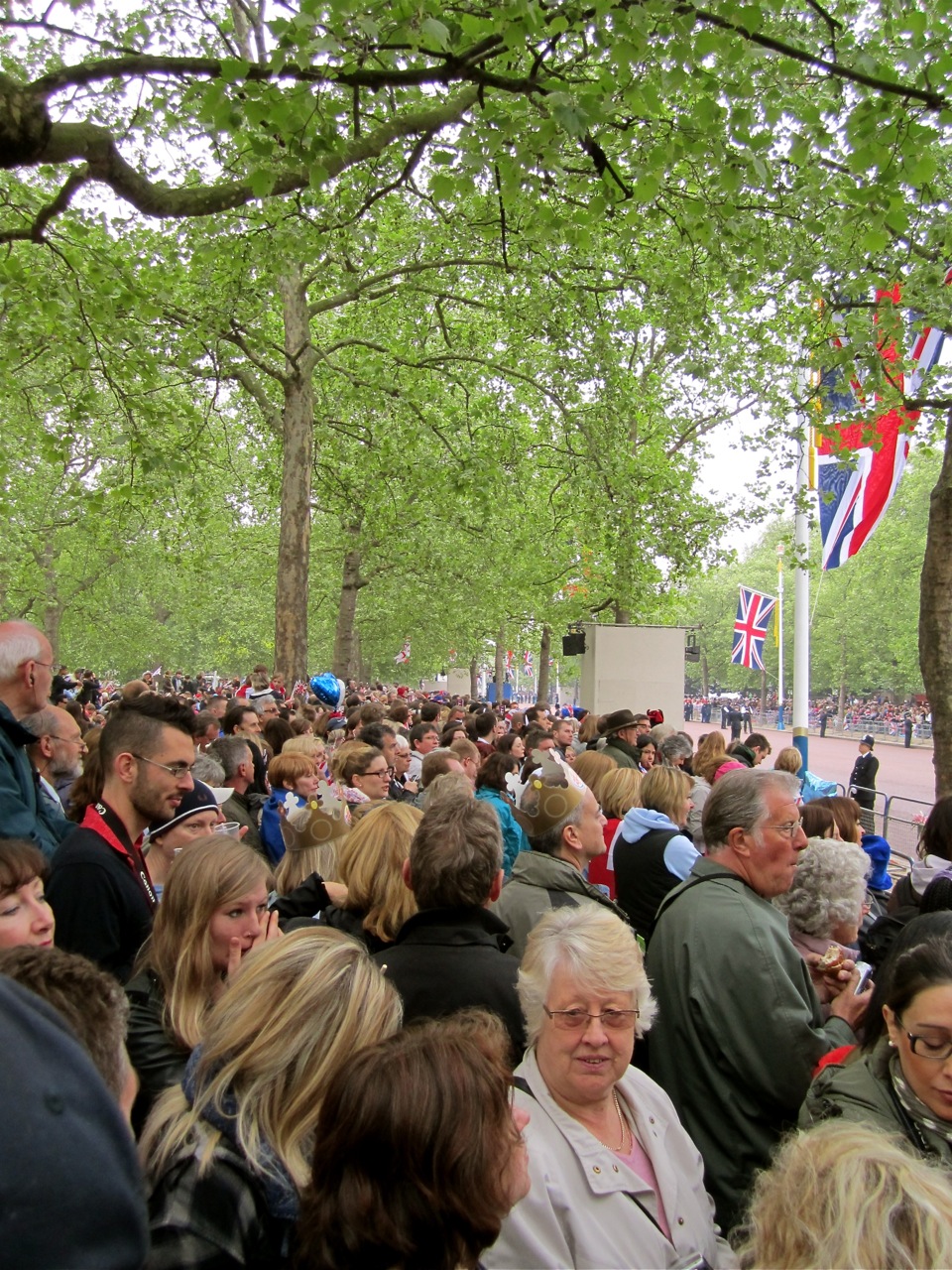 There were crowds aplenty once we entered the Palace gates and tried to find a spot. I was happy with the view of the balcony we had, but Ma was not so we went down along the Mall to find a better vantage point. It did not seem like one was to be found. The first spot we stood was inhabited by a tribe of giants. I’m not short myself, but I am not used to craning my neck to look up at people. This would certainly not do. So, we moved along the road and I heard somebody said, “God, what what you do if you just turned round an there was Prince William looking at you right then? I’d just die, I would. Die.”