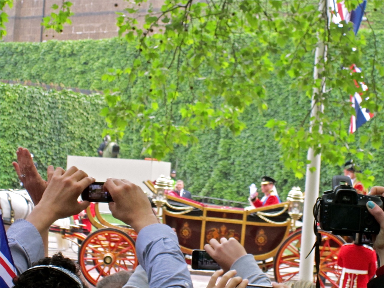 Another sealed carriage went by and I couldn’t see clearly so I had to wait until after I reviewed the film to discover that this one held Prince Harry, his girlfriend, Chelsy Davy, Prince Charles, and Camilla!