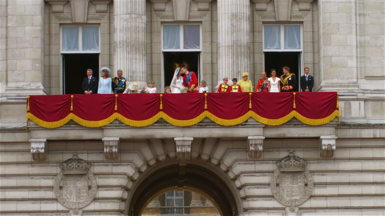 The crowds were getting impatient and were demanding a kiss. They shouted, “Kiss! Kiss! Kiss!” So the royal couple obliged.