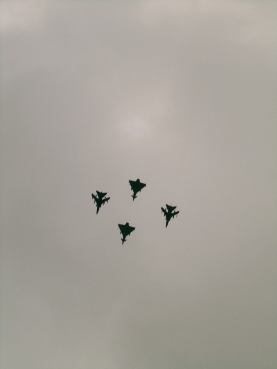 I noticed Camilla pointing at something in the distance and I was almost sure it was the terrorists coming for us, but it wasn’t. It was the flyover, which was terrifying.