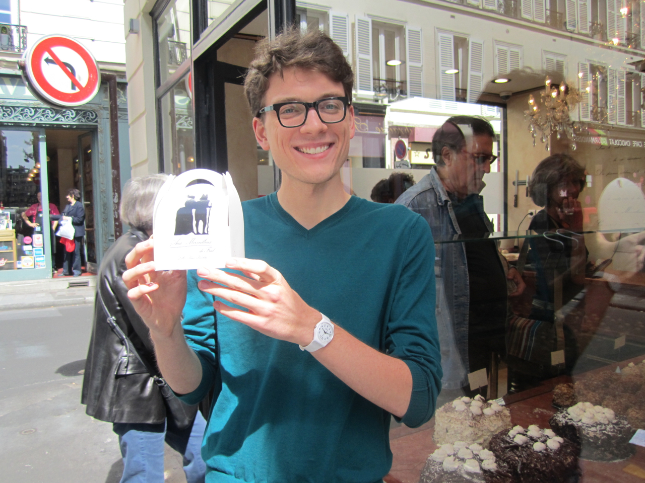 Anyway, my positive vibe had come down several notches. We left and were quickly in the sixteenth arrondissement and I was delighted by the area instantly. It is charming and clean and there is a wide assortment of shops. I had taken perfect notes and led us right to the shop. Aux Merveilleux de Fred is a beautiful shop, understated and tastefully decorated. They have a chandelier, so in all honestly, they could have decorated it any which way and I would have approved. I love chandeliers. I am often times deeply distraught that the ceilings in my house aren’t tall enough for them. I’ve seen gorgeous ones in shops that I would love to have and I want to make one out of sand dollars. In my future home/apartment there will be moulding and chandeliers galore. Anyway, the shop sells only a few things: meringues, croissants, and the occasional baguette. There are three types of meringues: chocolate, coffee, and speculoo. I had the chocolate.
