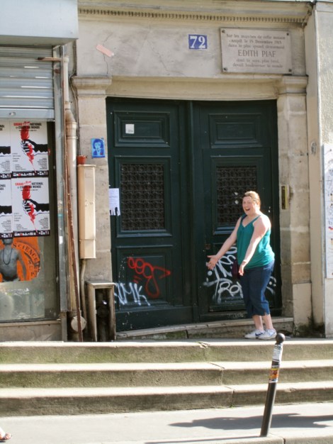 After rerouting ourselves, we quickly found number seventy-two. It was a delight for me to see. Legend has it that Édith Piaf was literally born on the step of this building. Her birth certificate claims that she was born in the Belleville Hospital, but we all know birth certificates lie. (Holla at the Donald Trump/Barack Obama reference/joke!) It was an incredibly unassuming place, not peaceful nor beautiful. I couldn’t imagine her walking along the roads singing for coins, but she did. Gosh, I love Édith.