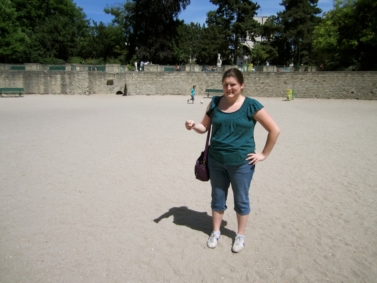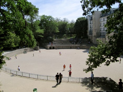 We climbed up to the top and sat down to look around. I was incredibly impressed. You could see where the animals were kept before being released to the gladiators (the two black squares.) The seats were not original, but archaeologists believe that the arena once held 17,000 people and had all the typical entertainment: gladiator fights, water battles, circuses, and the like. Nowadays, old men play pétanque and kids practice football. They were better than I’ll ever be. Then again, I don’t care.