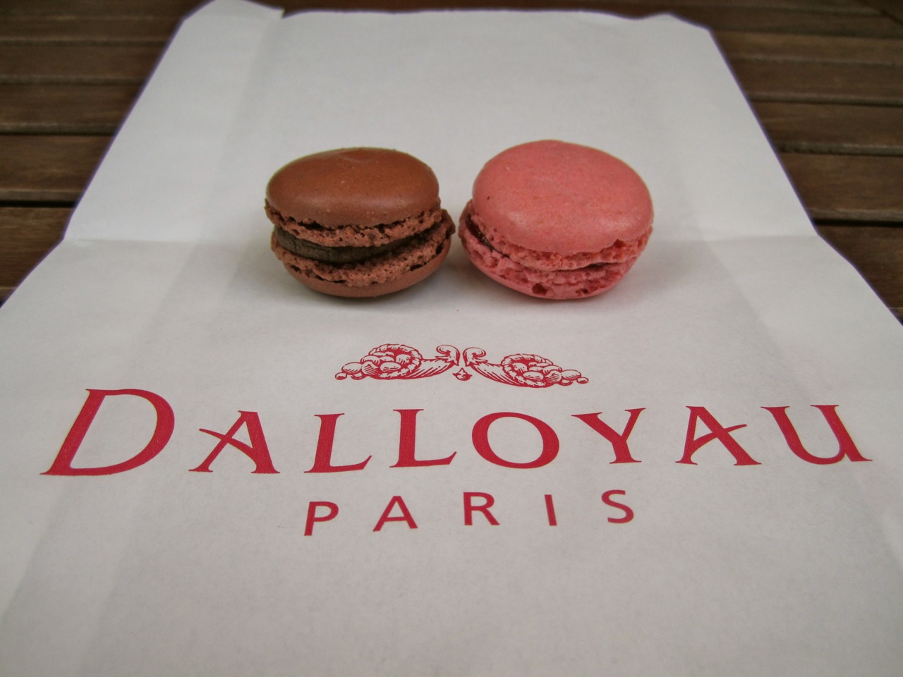 So, I took a bite–perfectly aged. The top was still crisp and the insides gave way easily. The raspberry filling was good. Next, the chocolate. The texture was the same and the ganache was very nice–smoky almost and well garnished. I was disappointed that I couldn’t use any vicious phrases like “Dalloyau made Ladurée look like a haven of good taste.” Though, that might only be a vicious phrase to me.