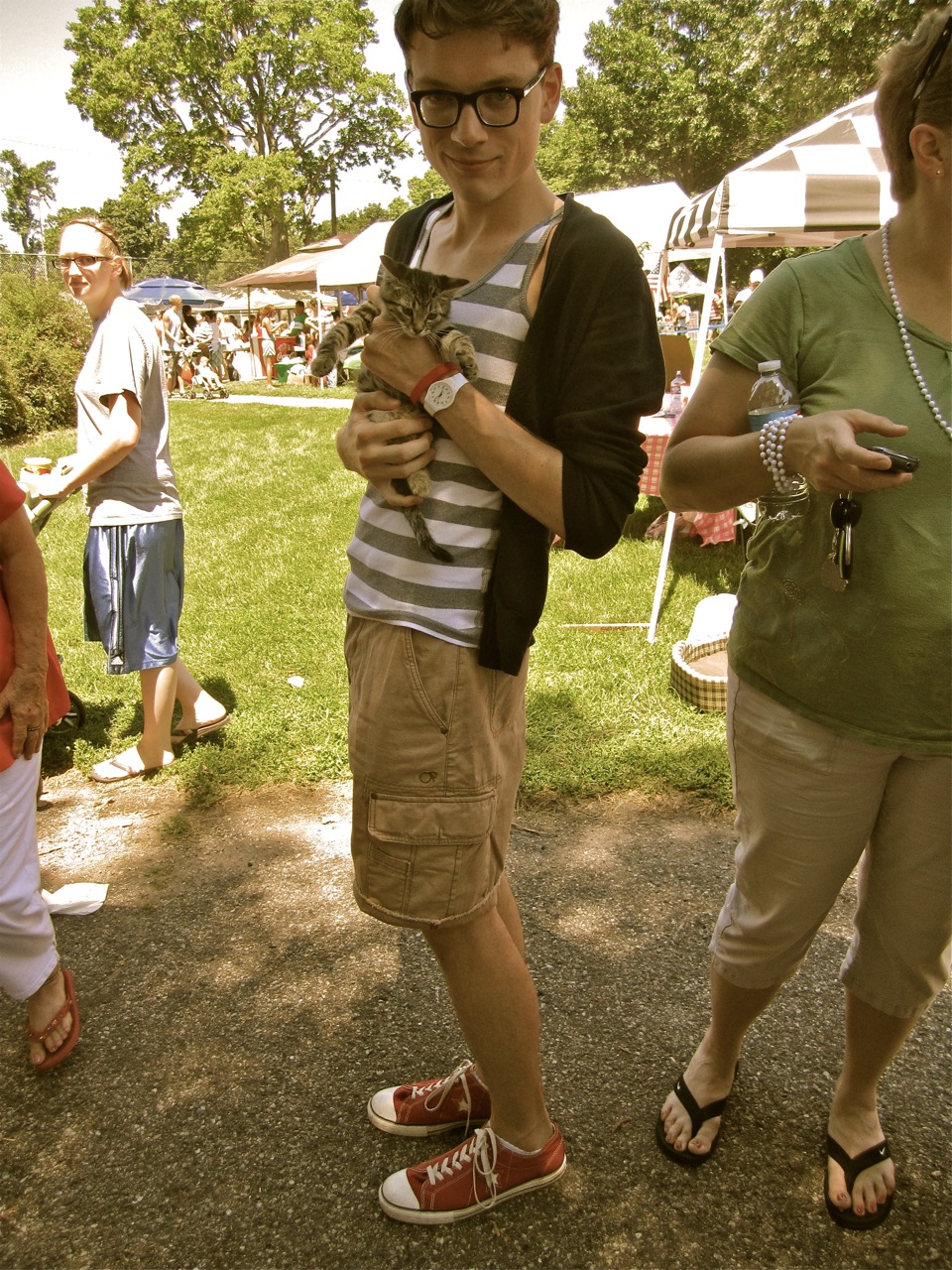 I also looked adorable on Bastille Day, but for some reason my picture is corrupted, so I can’t share. Imagine this: stubble, peasant cap, striped tank top, cigarette, square glasses, an aloof expression. Sad that I can’t show you.
