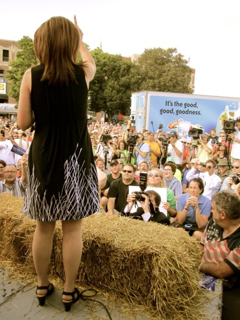The Fair wasn’t so bad this year because it’s Caucus season. All the candidates were here. I saw Fred Karger and Michelle Bachmann and Sarah Palin. The Bachmann thing was interesting. I made friends with a German reporter and I was elbowed by that bitch of a politician, Michelle. I really hate her and everything she stands for. She is a complete representation of everything wrong with the world these days.