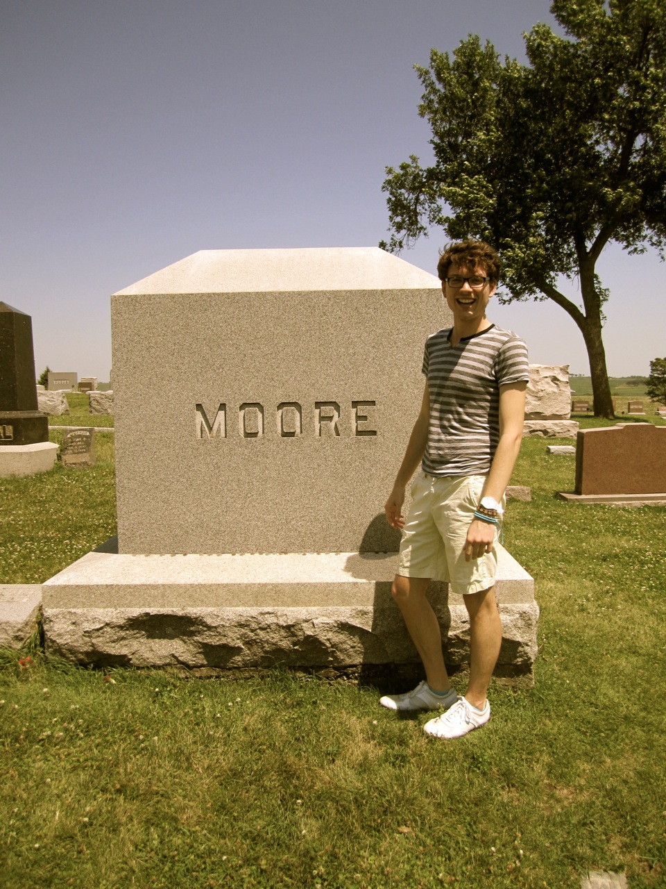 The town was dead (pun intended), and the museum was closed, so we made our way to the cemetery to see the graves of the Moore family and the Stillinger family. It’s a beautiful cemetery with big wrought iron gates and rustic stone arches. The entire thing is surrounded by the same wrought iron fencing–I was madly in love.