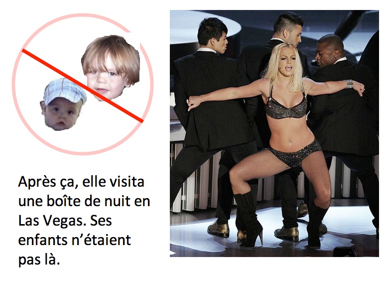 Part of a bizarre children’s book I made for French class. Britney was searching for her missing children. It was awesome.