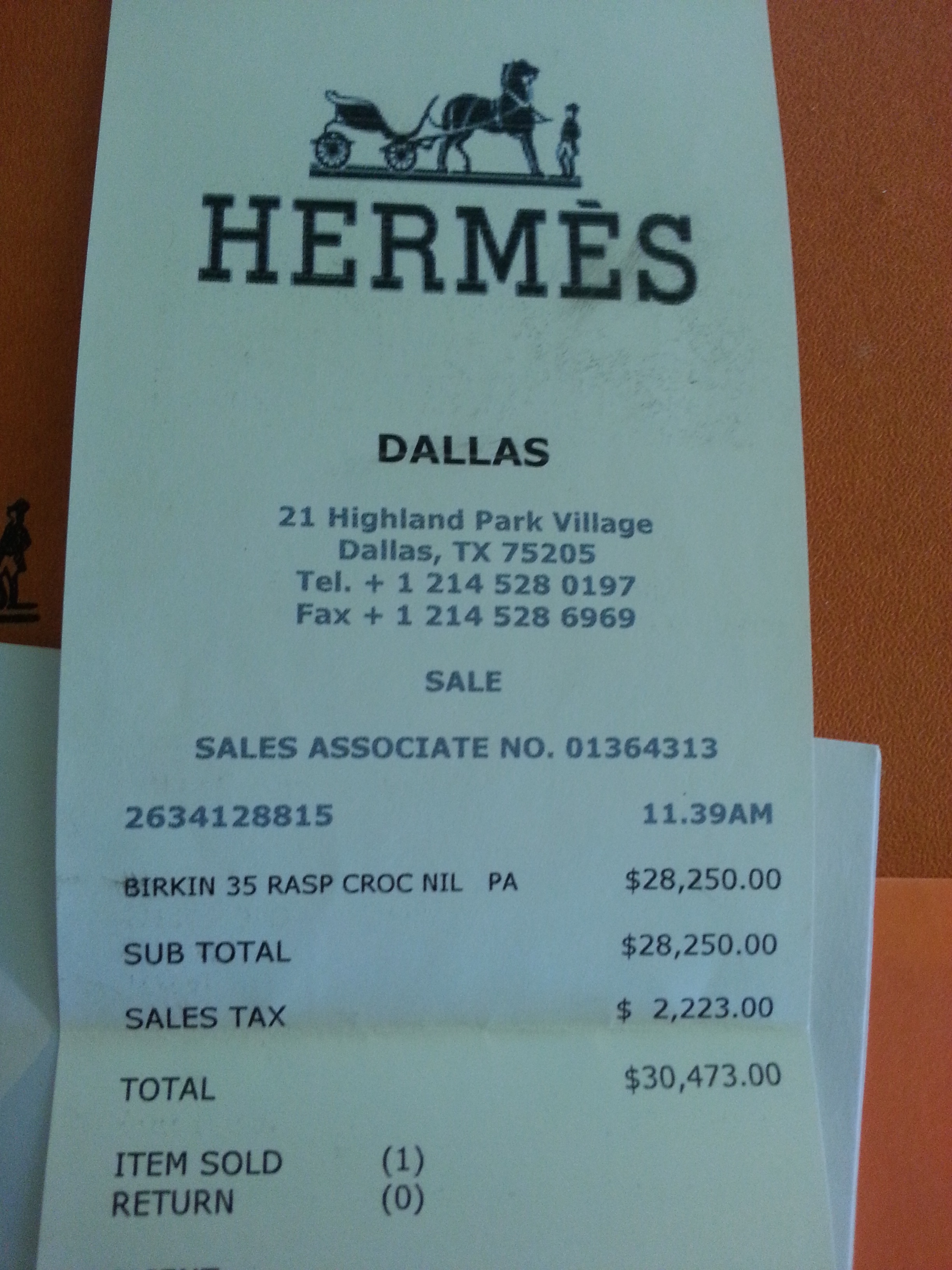 I don’t know where my father’s friend got it from, but it wasn’t her’s originally. Inside the box, though, is the original receipt from whoever the original owner was. She bought a Birkin bag for…you won’t believe it. I’ll show you.