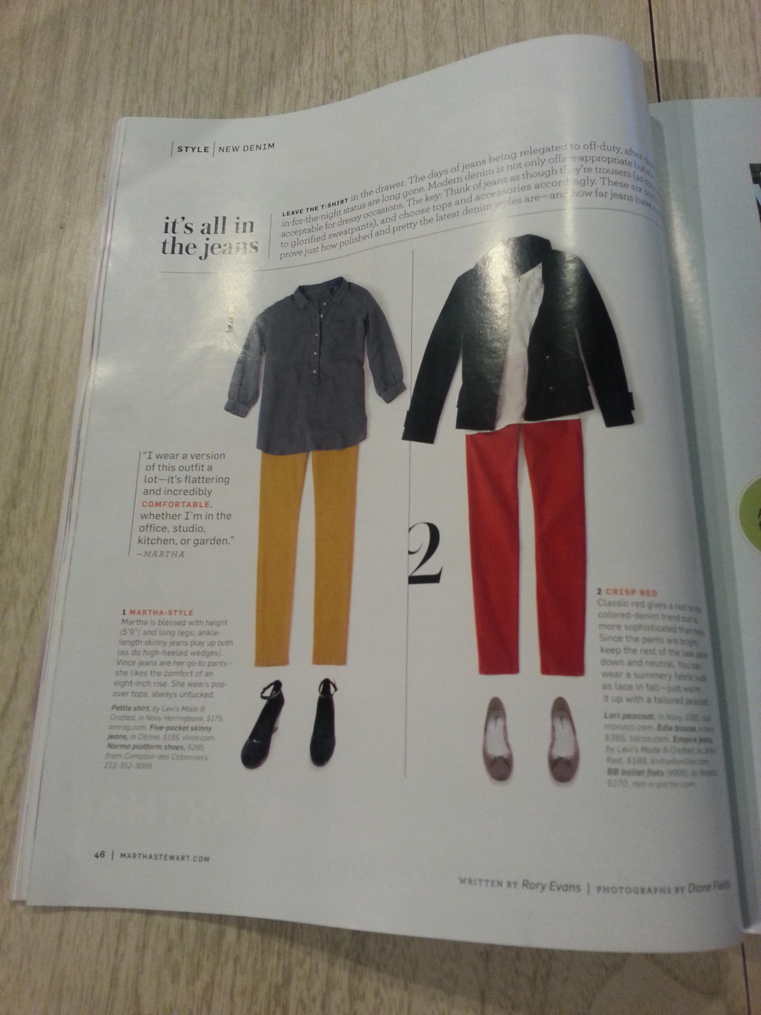 I was browsing through my favorite magazine, Martha Stewart Living, and came across an article Martha wrote about incorporating denim into her wardrobe. I love Martha and basically wish I were her, so I decided to dress like her.