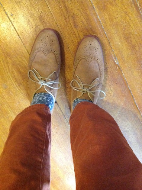 Unfortunately, I don’t have red jeans, which I understand is a fundamental sin against fashion. I do have mustard yellow jeans, so I went for the former outfit.