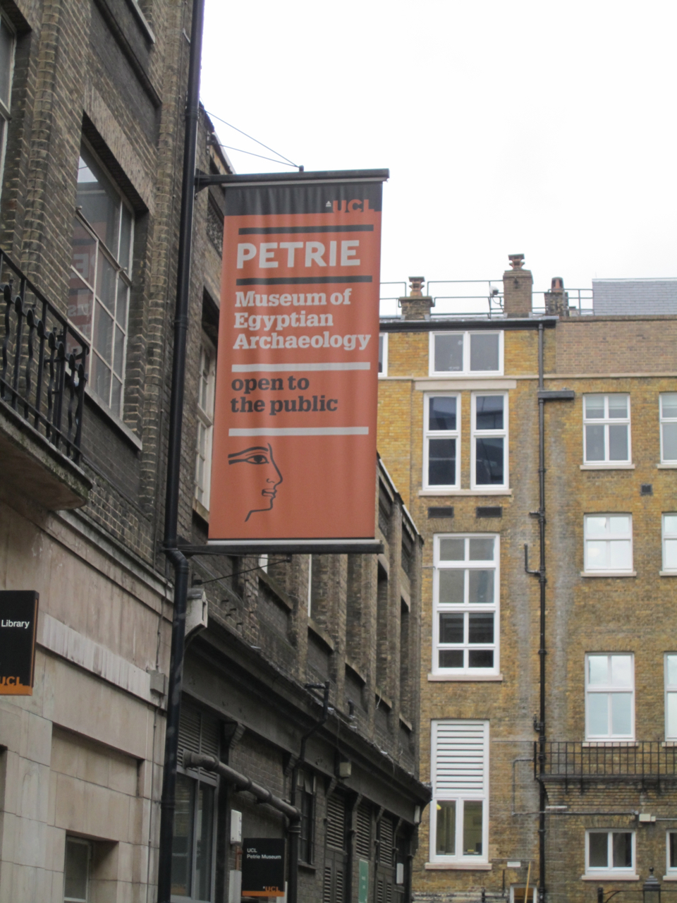 I have been wanting to see the Petrie Museum of Egyptian Archaeology for quite some time now. Ever since I began to read the Amelia Peabody series, my love for ancient Egypt has been reborn and burns again within me. I just need to be an Egyptologist and get it over with. Only a matter of time, I’m sure. The museum was only going to be open for a few hours today, and I wouldn’t have another chance to go during the entire trip, so we decided that I should just go while they get settled into the bed and breakfast and we’d all meet at the British Museum before tea. Great plan. I love doing things alone.