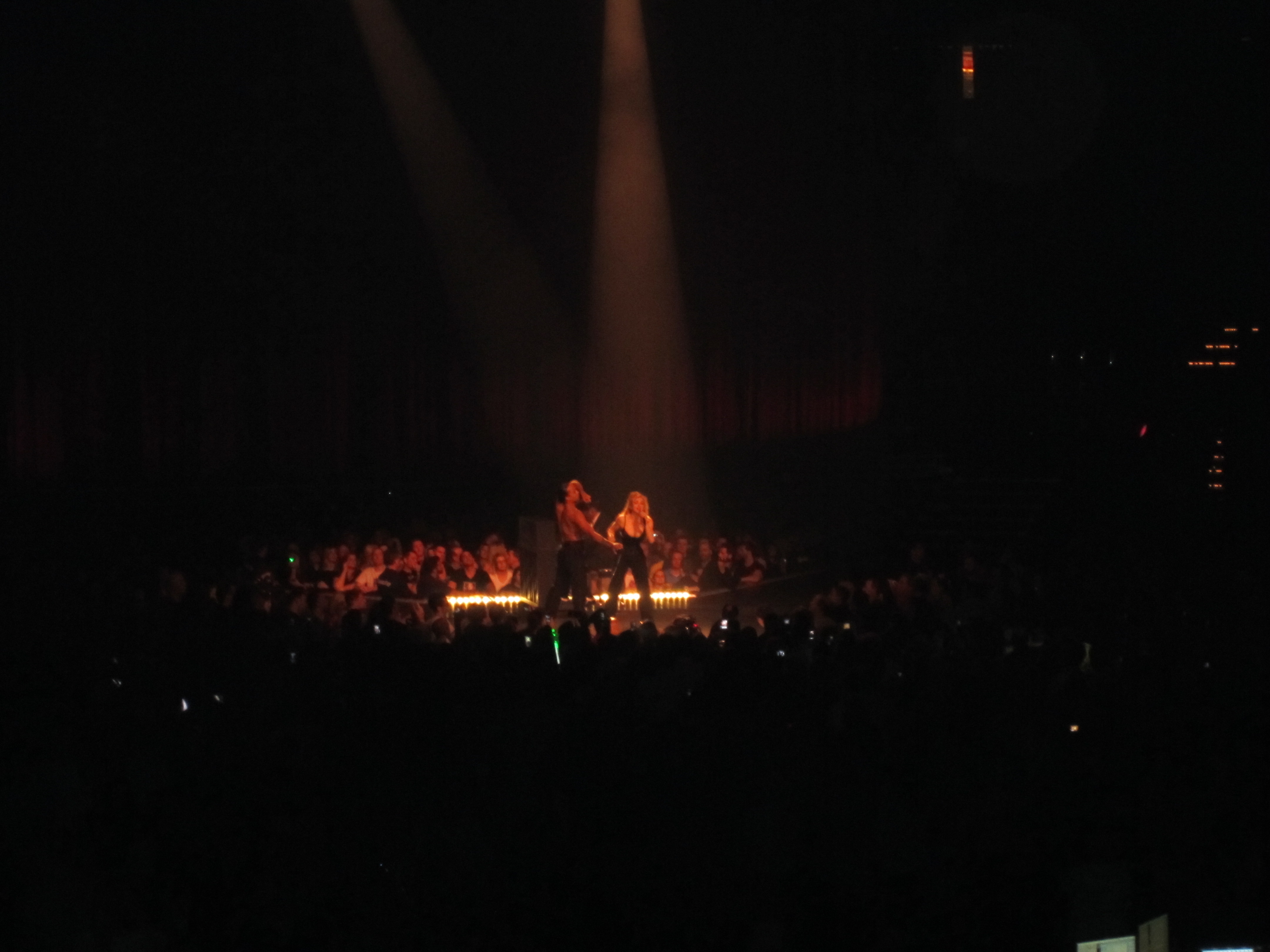 We had to leave late because Ma and Jessica were still working until early evening, so it took forever to get there and I was worried that I might miss something. I was delighted to find out that Madonna prides herself on being late, she didn’t come on until after 10:30 and the opener was scheduled to go on at 8. Paul Oakenfold? Whom? I Googled him, still confused. Whatever, I guess that I wasn’t missing much.