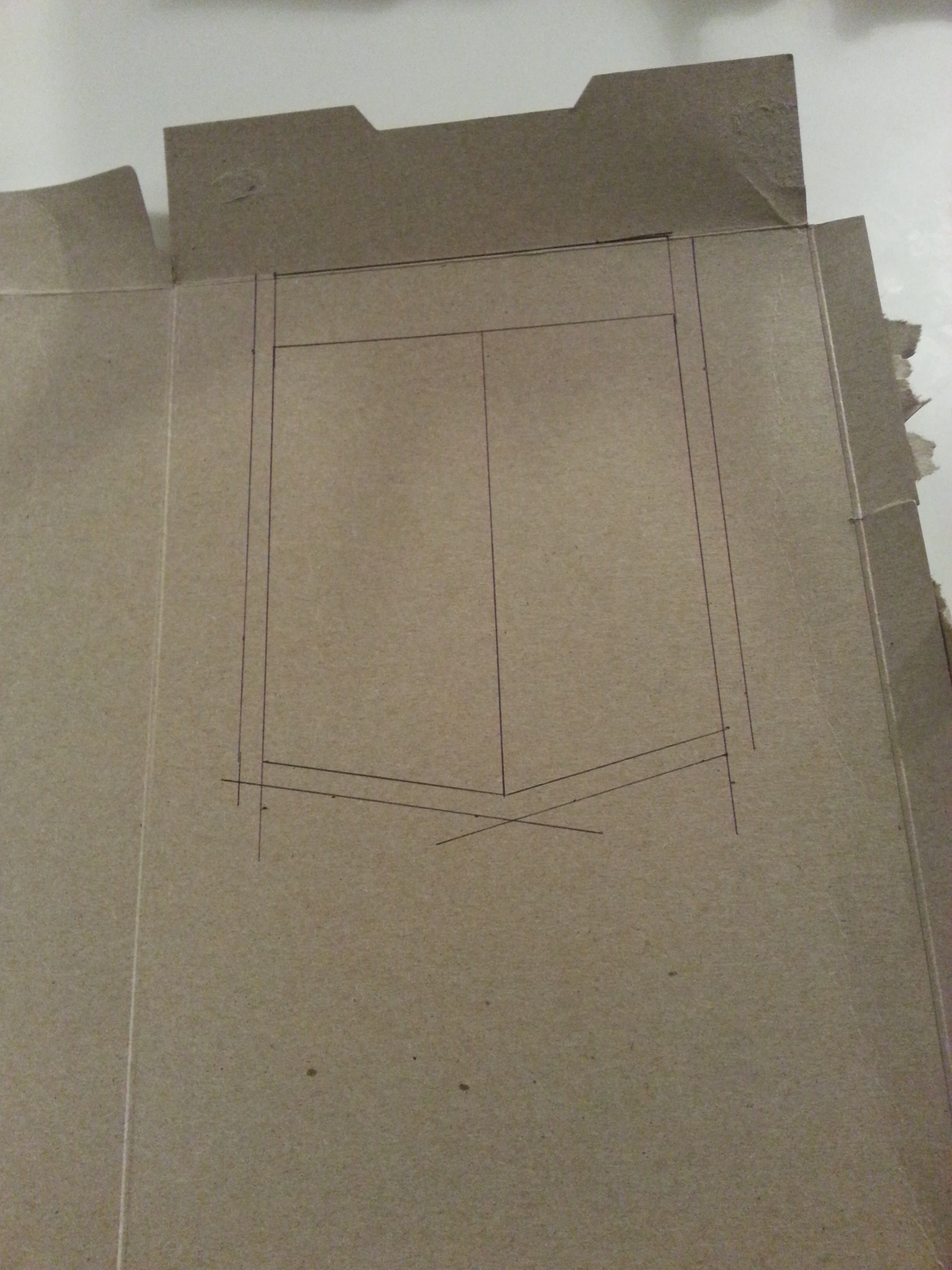 I measured the existing pocket and made a template out of an old Cheerios box. Recycling makes you sexy.