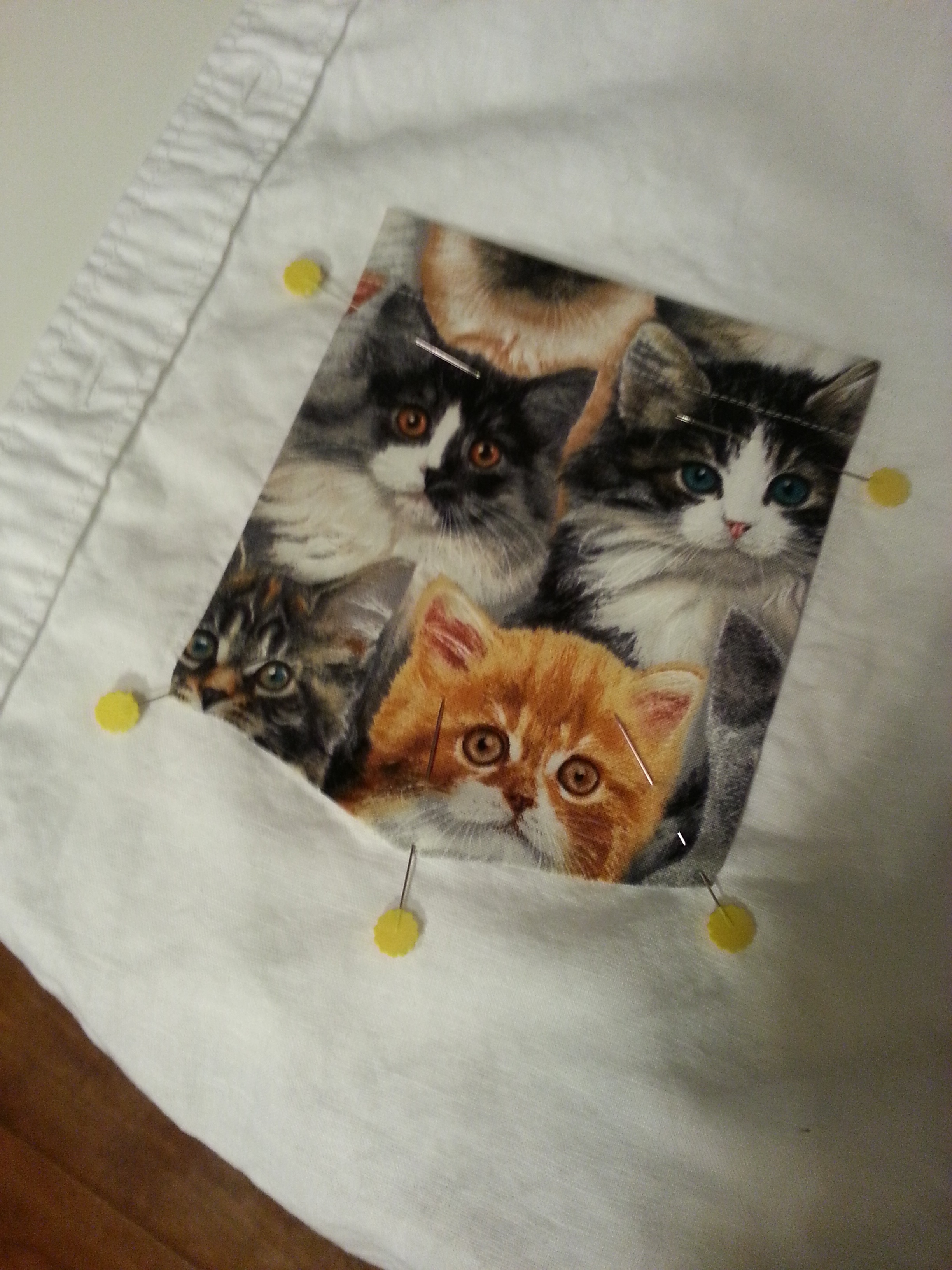 My shirt was a terrific success amongst both coworkers and children. They talked about it all day. Whenever I walked past, I’d hear them whisper, “CAT!” I need to add kitten pockets to more shirts or maybe make a kitten tie. That would be so elegant.