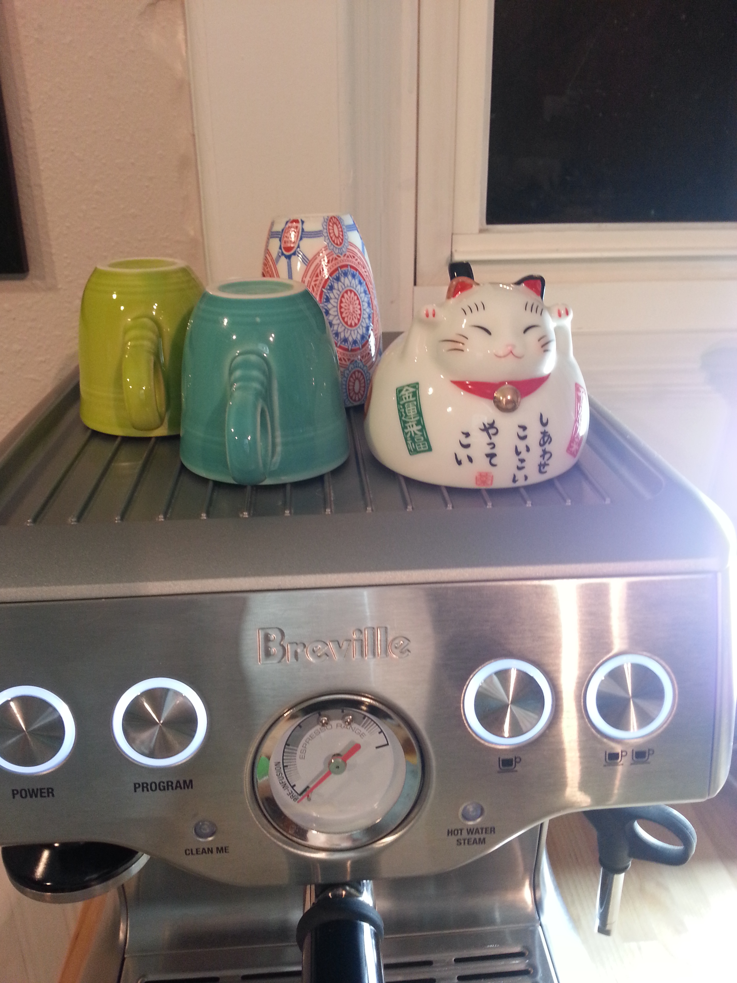 Ever since I started remodeling the kitchen, I’ve had the great majority of my dishes in storage, which has been devastating for me. What am I to do without all my decorative dishes? I have plates used exclusively for macarons and antique bowls and chopsticks and other things and I’ve had to make do without them for months. I think I’ll finally be able to put them in their new cases very soon and I’m beyond thrilled. Anyway, the other day, I was doing yoga in my bedroom and was staring at my collection of maneki neko that are sitting on a built in shelf with my collection of ancient Egyptian ushabti figurines. As I was gazing at them, I remembered that one was a teacup! You turn the cat upside down and it becomes the perfect espresso cup. I don’t know why Asian teacups are so small, but I’m delighted. It’s not the most practical thing, the legs aren’t the most stably positioned, but I’m not really bothered. I feel so elegant as I wander back through my memories to the day I bought it at the Japanese Embassy in Paris. That’s one of my favorite places in the entire city and I highly suggest you visit when you’re in Paris next.
