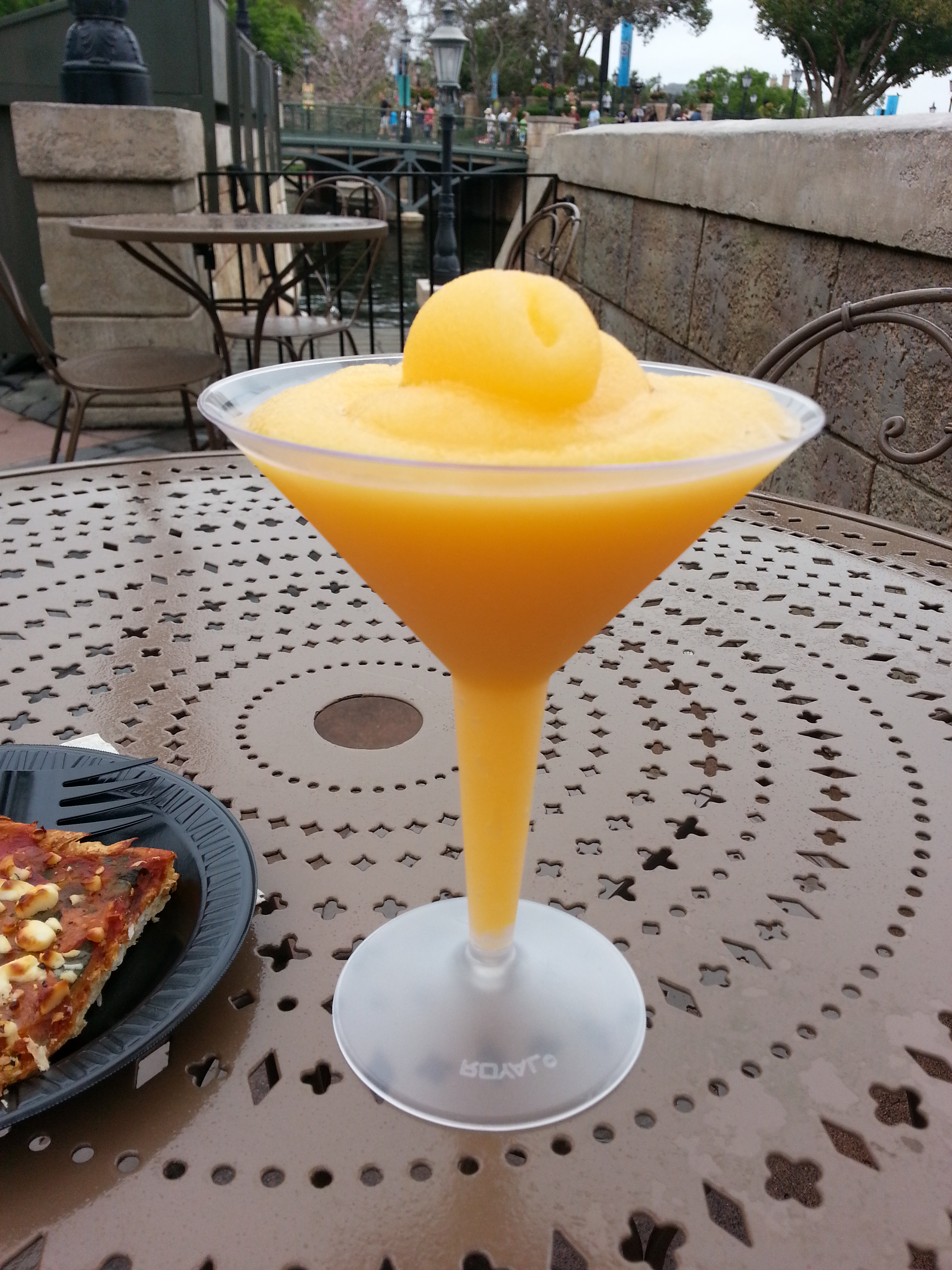Mexico is the last stop, and I thought a margarita sounded nice. I think they always sound nice. I love them, but the ones they were selling outside didn’t look like anything special, so I decided to pass and go into the pyramid. Inside, it looks like your in the middle of–I forgot the word–the town square? There’s a word for it in Spanish. I know this. I know a lot of Spanish. Thinking…thinking…thinking. Playa? No, that’s beach. Is it plaza? I don’t think so. Whatever it is, it looks like that. There were all the normal shops, but behind the stairs was a tequila bar. Has that always been there? I sauntered right in there and ordered a blood orange margarita with wild berry foam and sweet chile rim. Delicious!