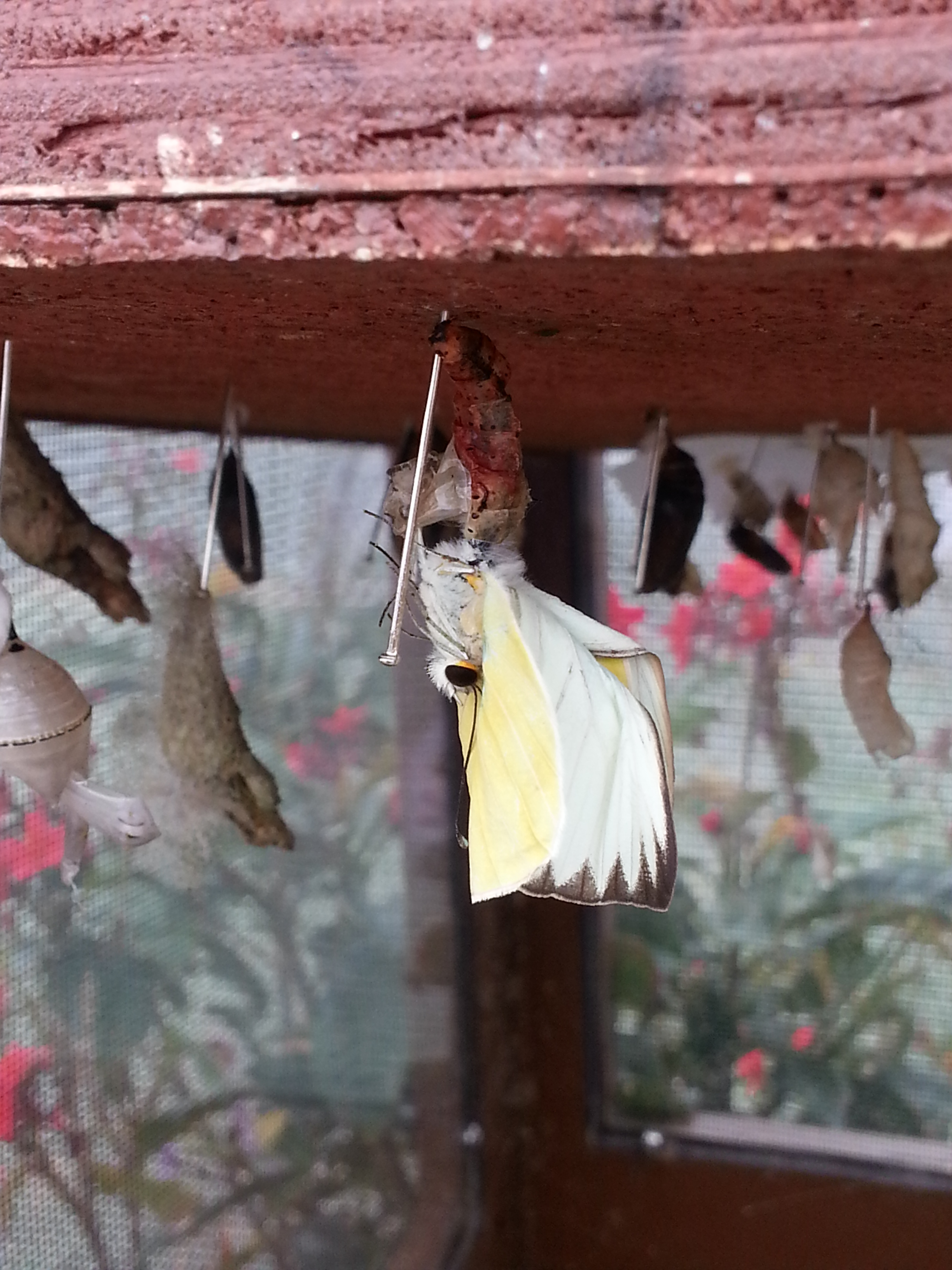 I did a lot of research later that night about butterflies. I was really stumped by them. I understand that they are caterpillars and become butterflies, but are they a completely different animal? Do they have the same organs? What goes on in that cocoon? My brain hurts thinking about it. The caterpillar digests itself basically and metamorphoses using only a tiny bit of tissue that remains the same.