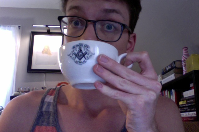I wandered around the Twinings tea garden in England for some time looking at all the different plants they used to develop their flavors. Good fun, that. I bought a new teacup that has the Queen’s face on it. My old favorite teacup is not doing so well. It’s an antique from a Freemason lodge, but it has a little crack in it, and I don’t want it to grow any more.