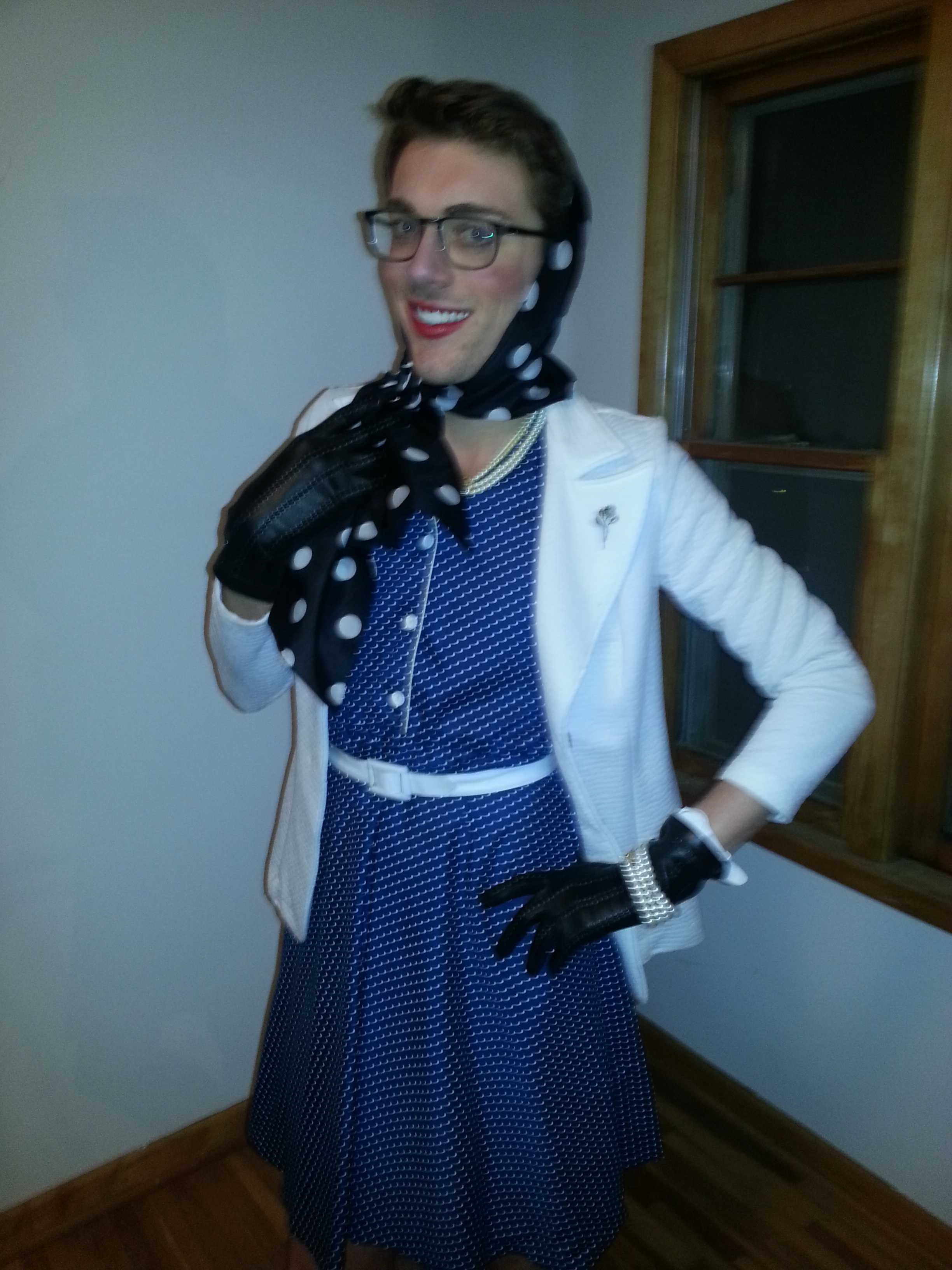 It’s the greatest thing on television at the moment and I can’t get enough of it. The culture of drag is one of my favorites and I adore the performers in that world. So, I grabbed a bunch of samples, as did my brother, and in my grandmother’s old mirror, we painted our faces. I drew on a Joan Crawford like face with exaggerated lips and eyebrows and I blended my cheekbones to high heaven. I was rather delighted by it all. It was fun to turn into somebody else. After putting our faces on, we rummaged through the clothes, and I’m not going to lie, I look great in a blue polka dotted dress I found from the fifties as seen above. Odd though this may seem to you, it’s kind of a fitting tribute to that house which I soon won’t be able to enjoy. I don’t have many memories of my childhood, but one thing I remember very clearly is all of the makeup samples she would always have and let me play with. I wasn’t applying it correctly back then, it was more just like my face was a canvas and I had a lot of paint and no idea what I was doing. I’m sure there are pictures in a box somewhere. I had a lot of fun. I also had several looks, a sleazy movie premiere ensemble, while Jose modeled the futuristic whore outfit. Then a slutty Sophia Loren look with Jose demonstrating androgyny based on Qui Êtes-Vous Polly Maggoo?