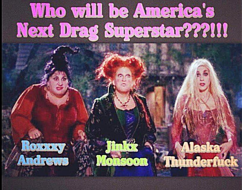 I’m really stressed out, guys. In less than two weeks, we will know the winner of this season of RuPaul’s Drag Race, the most important reality competition in the history of television. I live for this show. It brings me such unbridled joy. I have loved it from the moment I laid eyes on it and I have never faltered in my devotion. This season is just as amazing as the rest have been, and I’m thrilled that my two favorites, Jinkx and Alaska, have made it to the final three — odds are in favor of one of them winning, so I’m glad. I’m torn, though, about who I want to win most. All season, I’ve been rooting for Jinkx — I chatted with David Sedaris about this just a few weeks back. We were both hoping she’d get the crown, but, I love Alaska. She is so funny and I love the hooker look she does and I think she’s a confident performer. Jinkx, too, is amazing — I mean, after that Little Eddie bit she pulled — how could she not win? So, if one of these two wins, I’ll be glad. I am already anxious for the next season to begin. I just love drag queens so much!