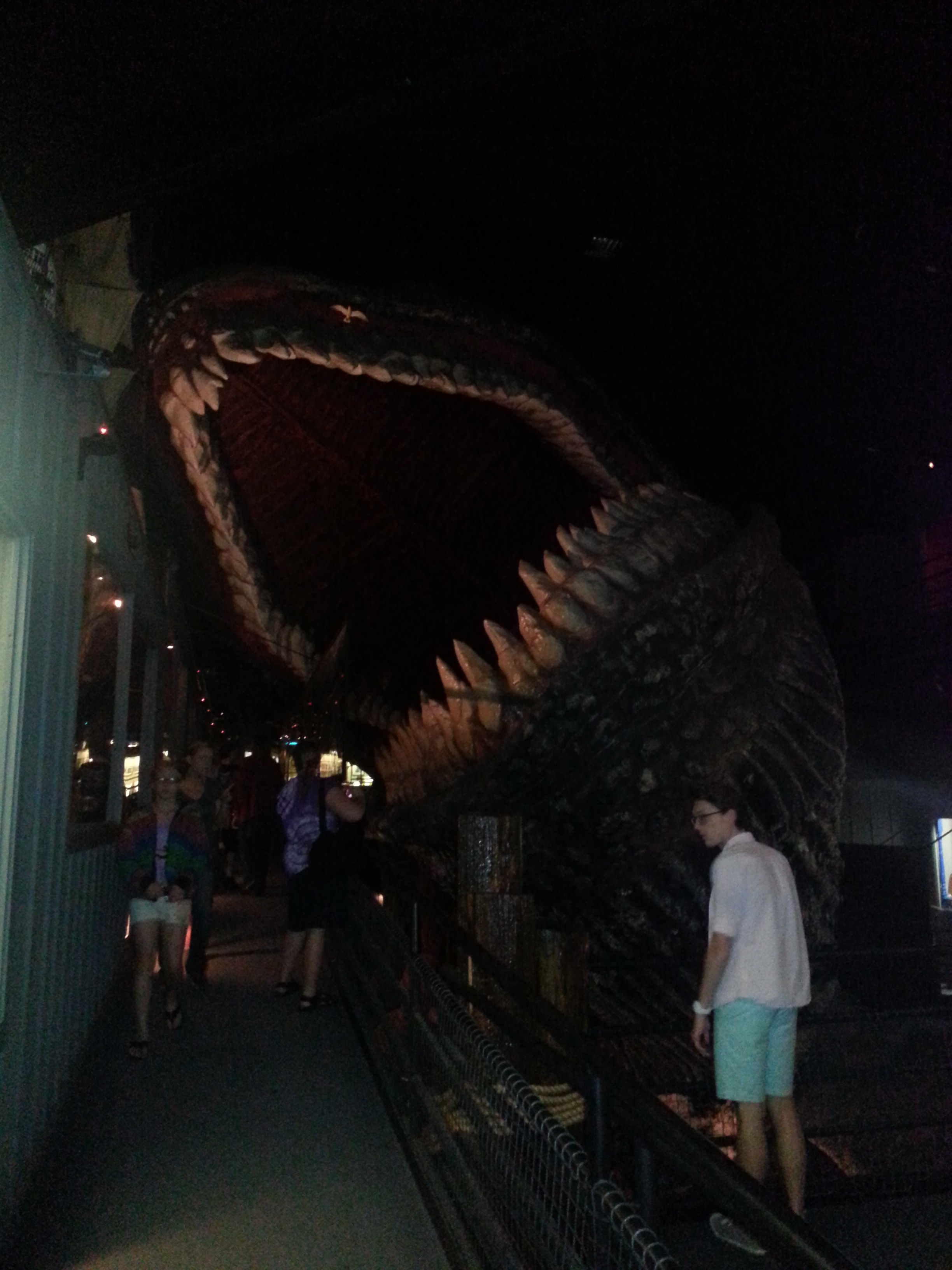 The misery continued and we were soon in some tragic, dimly-lit building that appeared to be a leaking airplane hanger. Leaking might be an understatement — water was literally gushing in from above. It wasn’t raining. This worried me. In the center of it all was a giant recreation whale. IT WAS STUPID. There were ramps surrounding the whale and there were terribly lit cases filled with memorabilia — most of it recreations. TRAGIC.