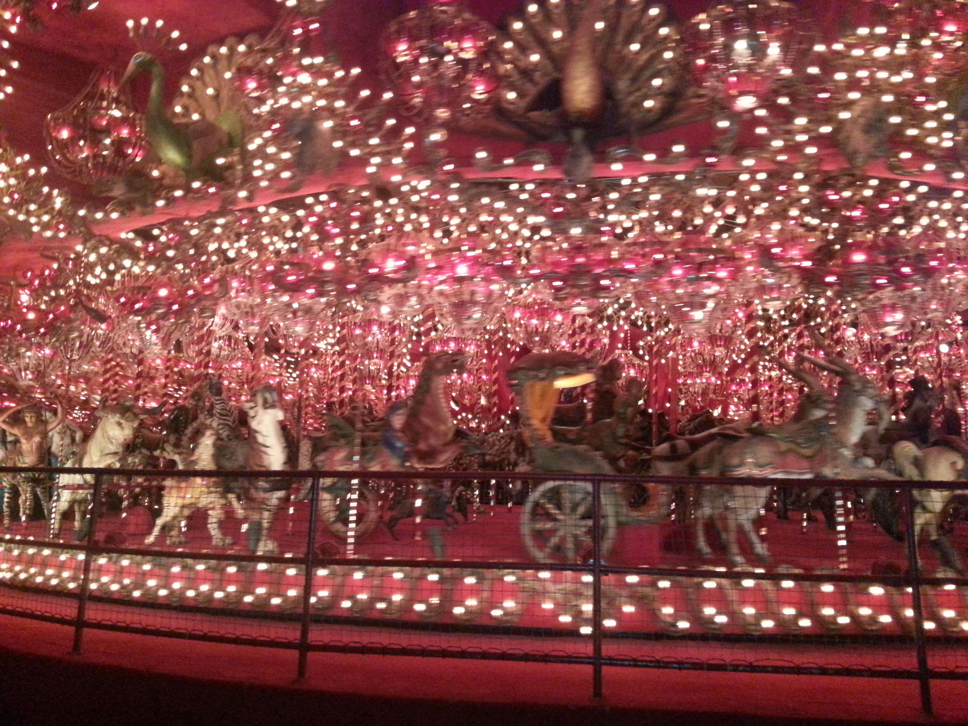 This misery continued for ages and then all of a sudden were were in a Liberace nightmare. A labyrinth of red velvet walls was interspersed with robotic orchestras that played the most awful music. I COULDN’T BEAR IT. Then all of a sudden there was this massive carousel: