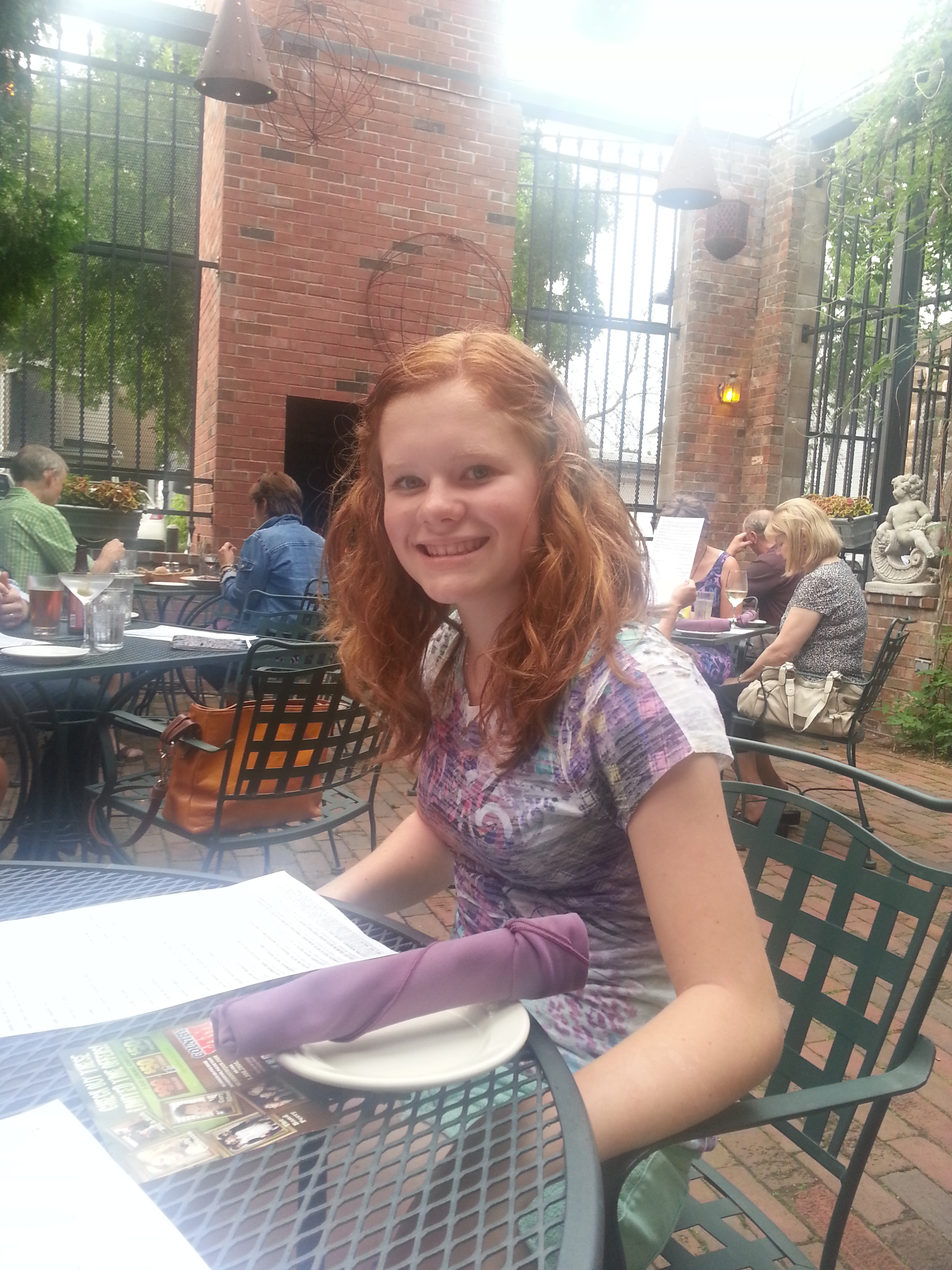 ME with the menu. So many options! Ma sat for twenty minutes browsing the menu without actually reading any of it. She’s awful with menus. She wanted some steak thing, but was outraged by the price. I told her to be bold and daring and order what she wanted, which caused her to burst into tears. I was the Oprah of Mona Lisa. I ordered eggplant manicotti. Interesting. The eggplant was thinly sliced, deep fried, then rolled around ricotta cheese and topped with a chunky tomato sauce. Good. The salad on the side was excellent as well. I do enjoy a good vinaigrette. I also had a margarita and a flour-less chocolate cake. ‘Twas good.