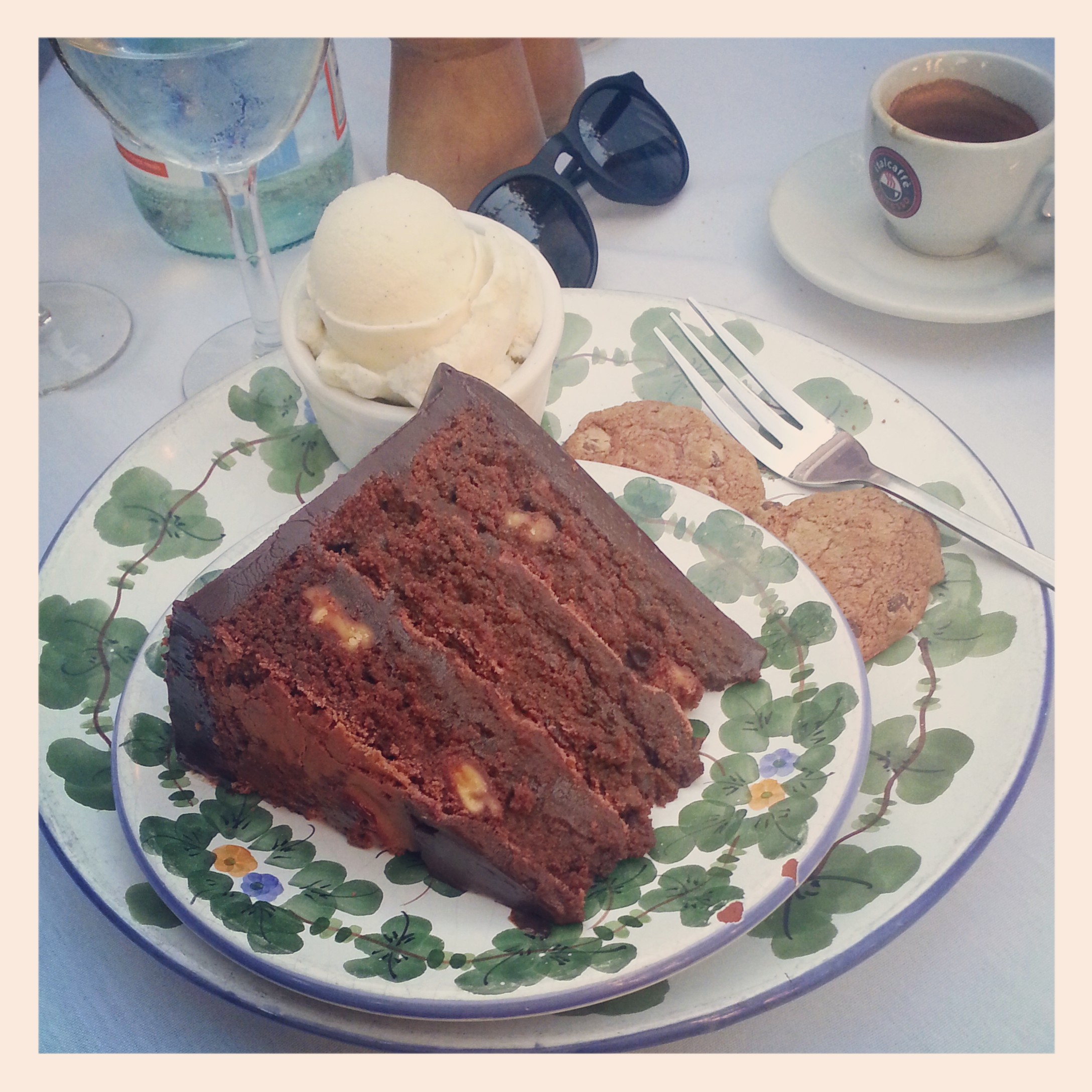 The Australian waiter with the hard-to-decipher accent asked me if I wanted dessert. Did I want dessert? Is the Pope a Catholic? Is the sky blue? Is Joan Crawford the greatest actress of all time? OF COURSE I WANTED DESSERT. I LIVE FOR DESSERT. DESSERT IS MY EVERYTHING. I ordered Ricky’s Chocolate Cake à la mode. It could have served an entire birthday party. IT WAS MONSTROUS. There was no way I was going to eat a quarter of a four-layer cake, a pile of ice cream, and chocolate-chip cookies. My stomach is surprisingly cavernous, but that was just not happening. I had the kitchen box it up for me.