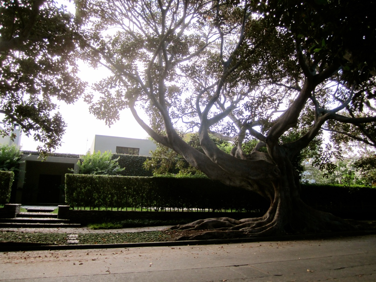 Reader, Brentwood is the most beautiful neighborhood I’ve seen in America. I’ve been to many, many places. I’m pretty confident that I’ve been more places that you. I’m not saying you’re a peasant, I’m just saying I’m well-traveled. (You’re #totes a peasant!) I couldn’t get over the architectural variety of the mansions and houses, but more than that, I am absolutely in love with the trees. OH THE TREES! I don’t know what they’re called, but they are absolutely magnificent. They might be even more dear to me than palm trees and that’s really quite a statement. I can’t even believe I said it. Whatever they’re called is unimportant, it’s more important the way they captivate me. I love the way the thick trunk shoots to the sky before unexpectedly sprawling in all directions casting dark shadows with its canopy of leaves. Foul smelling little fruits litter the sidewalks, but for me, that only adds to their sinister and macabre appeal. My favorite part, though, is the roots. They’re near the surface and monstrous and spread out marvelously from the trunk. I can’t get enough of these trees. I think they’re called Coral Trees, but I’m not one hundred percent on that.