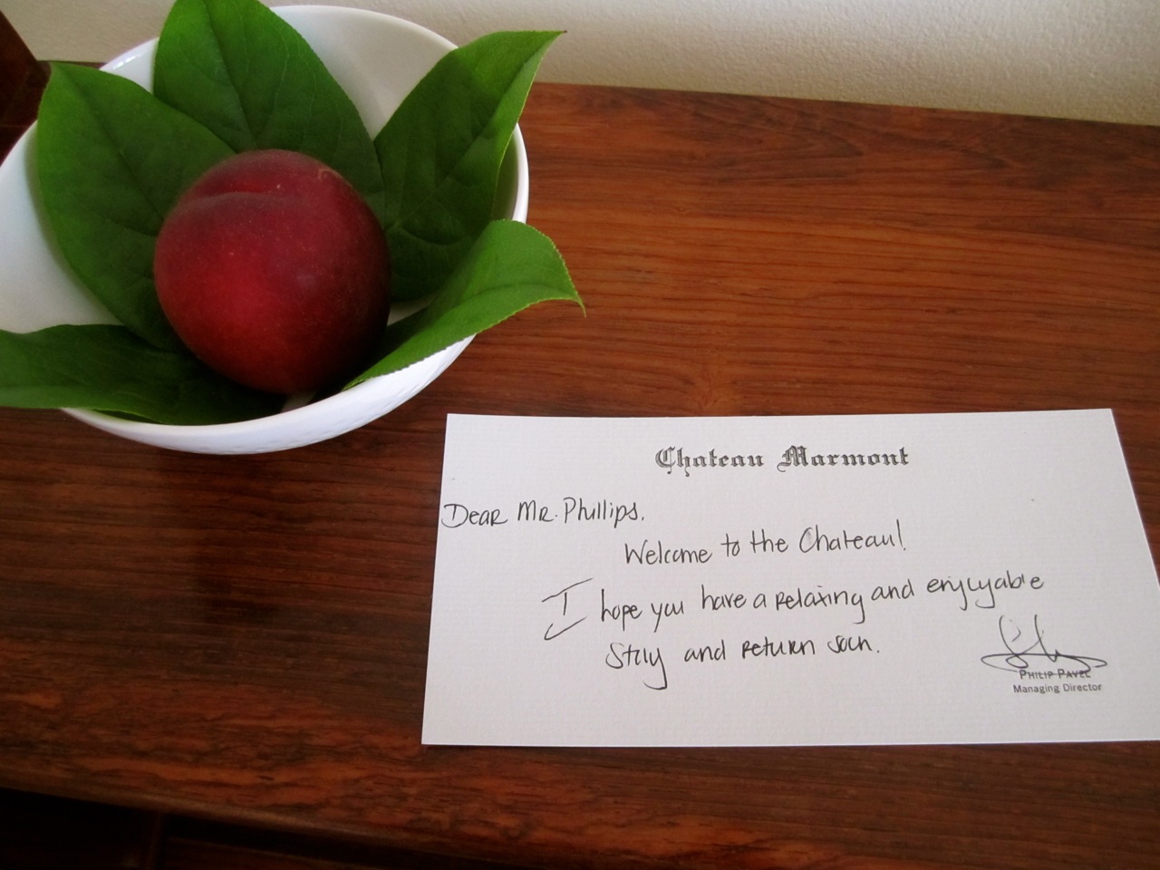 There was none of that sterility that you find in most hotels. You go into a Hilton Garden Inn or a Baymont and all the rooms look the same and they all smell the same and they all feel a bit like a hospital. Not the Chateau. My valet showed me the various amenities and then left me to get comfortable in my home for the day.