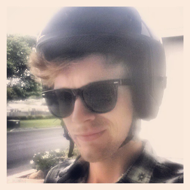 After I woke up and ate a bit and had some wonderful coffee, Sandy and I went out for a ride on her scooter. Don’t I look dashing in a helmet?