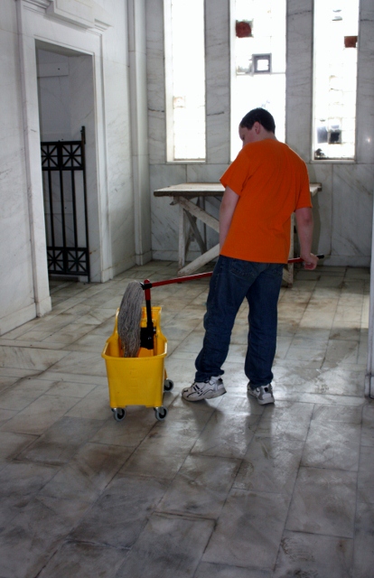 I’ve been meaning to mop my kitchen since last Wednesday. Still hasn’t happened. I just hate mopping so much. It goes on my list of unfavorite things right after washing the dishes. I don’t feel like this laborious activity does much good, either. It seems like you’re just pushing wet dirt across the room. I sweep my floors every day — I’m not a heathen — so it’s not as if there’s massive piles of junk in the middle of the room. I just can’t be bothered to get out the mop and the bucket and find the chemicals and move everything in the room and get my socks wet. It’s just too much. I’m going to try to force myself into doing it soon, but I’m making no promises. If I had more antidepressants, I’m sure I could muster some kind of motivation. Alas, no.