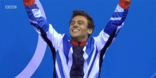 Because of Tom’s bravery and alarmingly well-sculpted abs, I have joyously conferred a sainthood onto the gorgeous Mr. Daley. Let’s watch some celebratory pictures and GIFs of him, shall we?