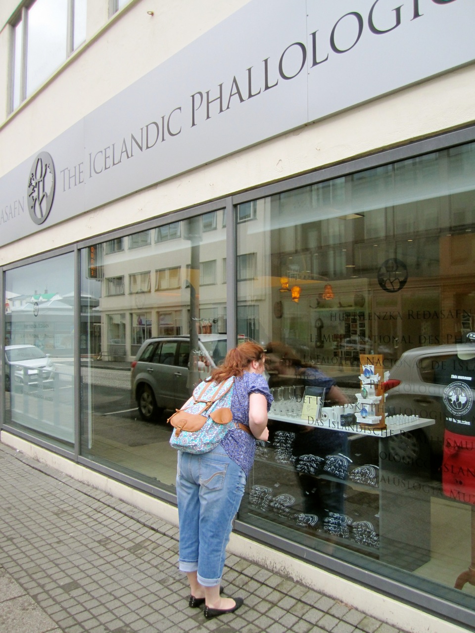 From the bakery we sauntered down the main shopping street, Laugavegur, and poked around a few shops. They sold lots of wool and viking things and postcards. Stamps cost more than the postcards. We finally made our way to the Icelandic Phallological Museum, the world’s largest display of penises…mainly so that we’d be able to say we went there.
